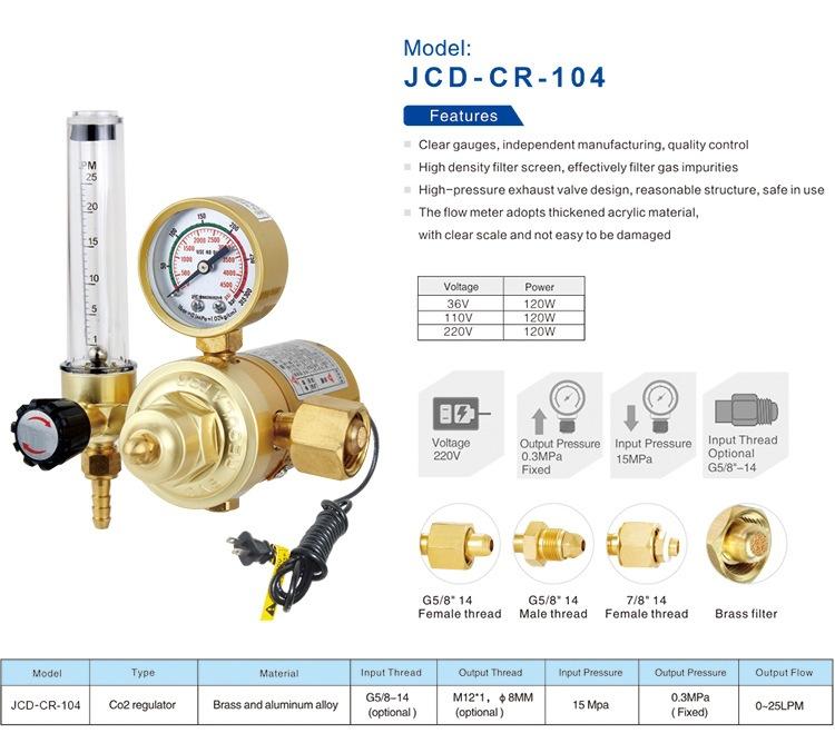 Reductor de presión de oxígeno para soldadura de porcelana dorada JCD-CR-104 todo cobre oxígeno acetileno reductor de presión válvula reductora de presión