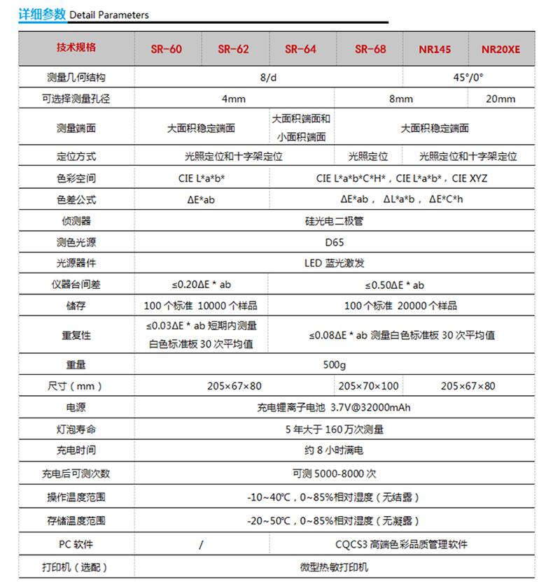 SC-10, SR60 universal color difference meter, SR62 high precision colorimeter, SR-64 upgrade with chromatic bi...