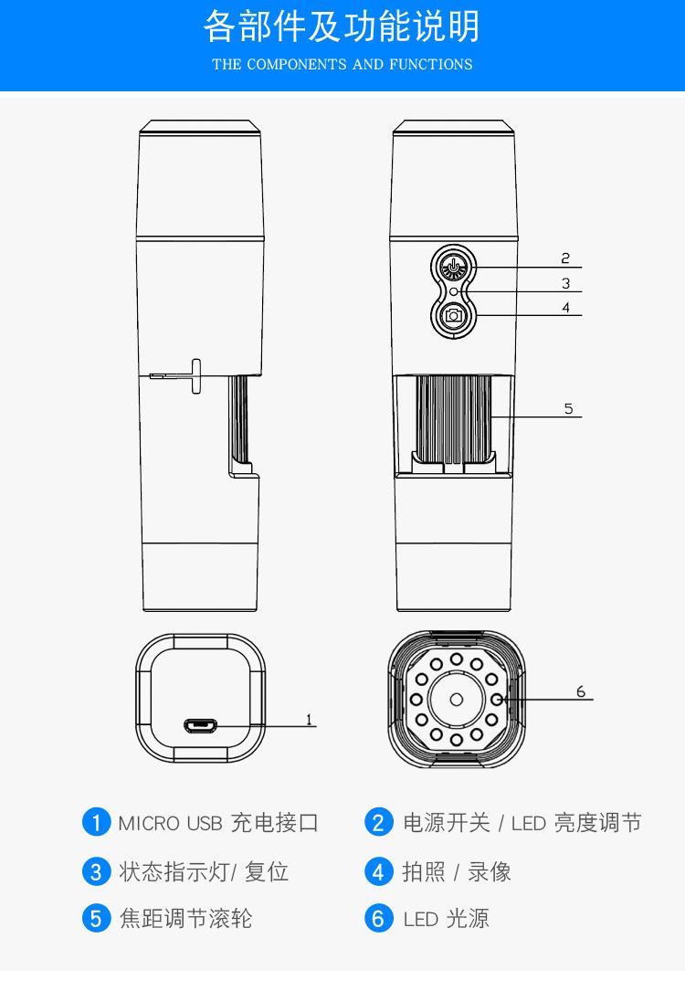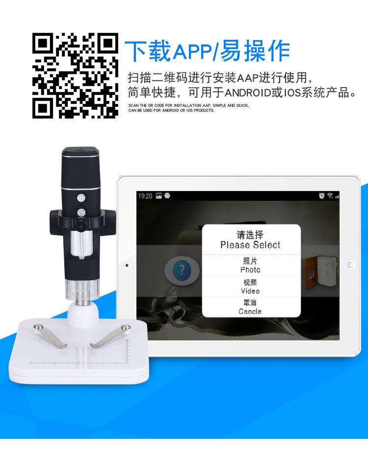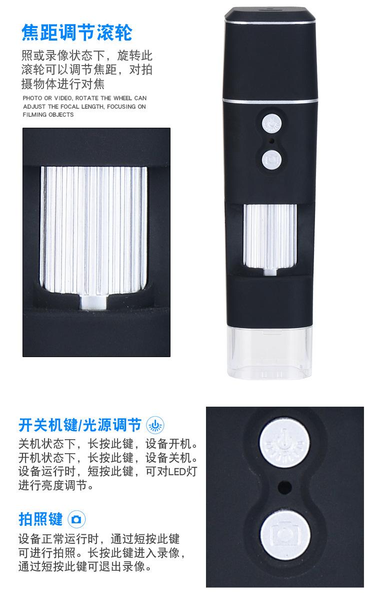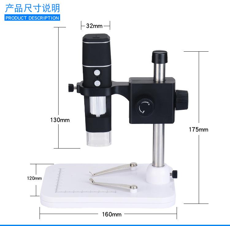 Microscopio electrónico (interfaz USB, interfaz AV, pantalla integrada, conexión WIFI)