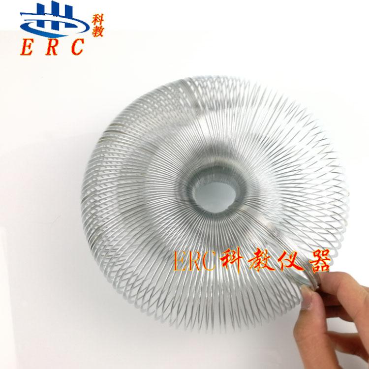 Contenido experimental: Abra el paquete, saque el resorte ondulado y prepare 36 alambres delgados de aproximadamente 40 cm de longitud; use los alambres delgados para atar los resortes cada 4 vueltas y cuélguelos en el soporte horizontal, asegurándose de que el espaciamiento entre cada vuelta del resorte sea igual; mueva rápidamente la lámina de resorte y observe los cambios en el espaciamiento entre cada vuelta del resorte.