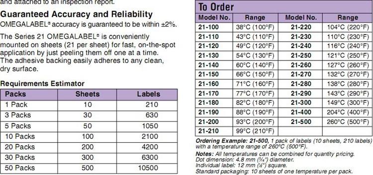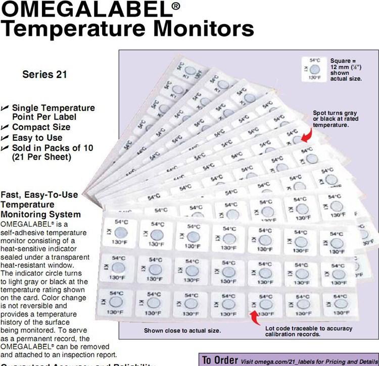 Etiquetas de temperatura American Omega 21-280, 21-170, 21-290, 21-180, 21-300, 21-190