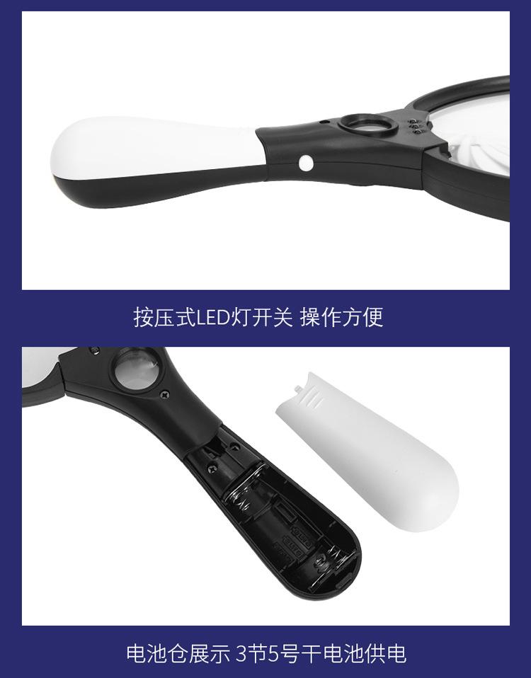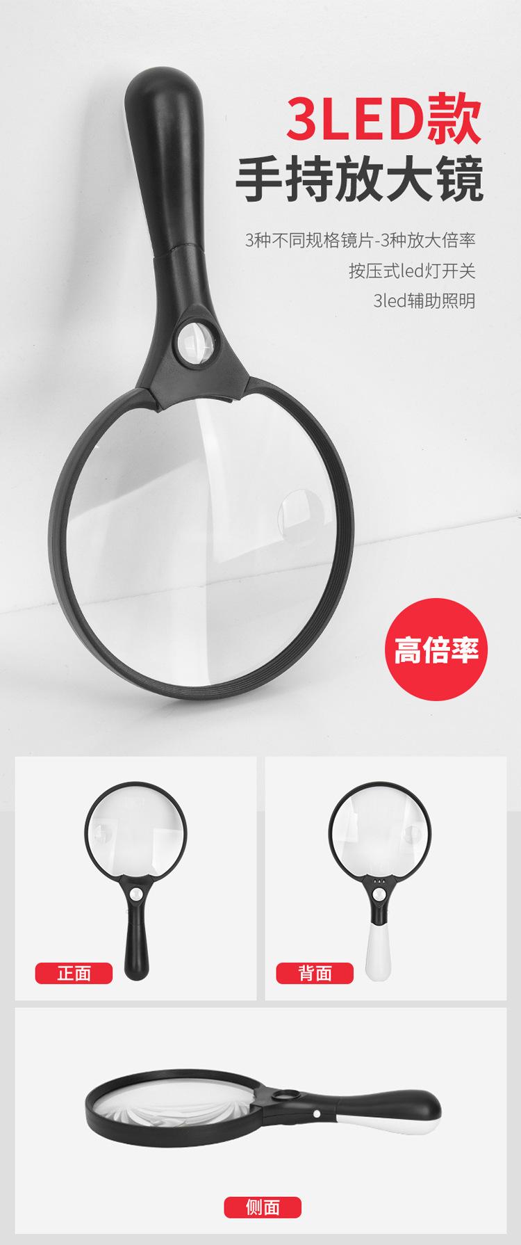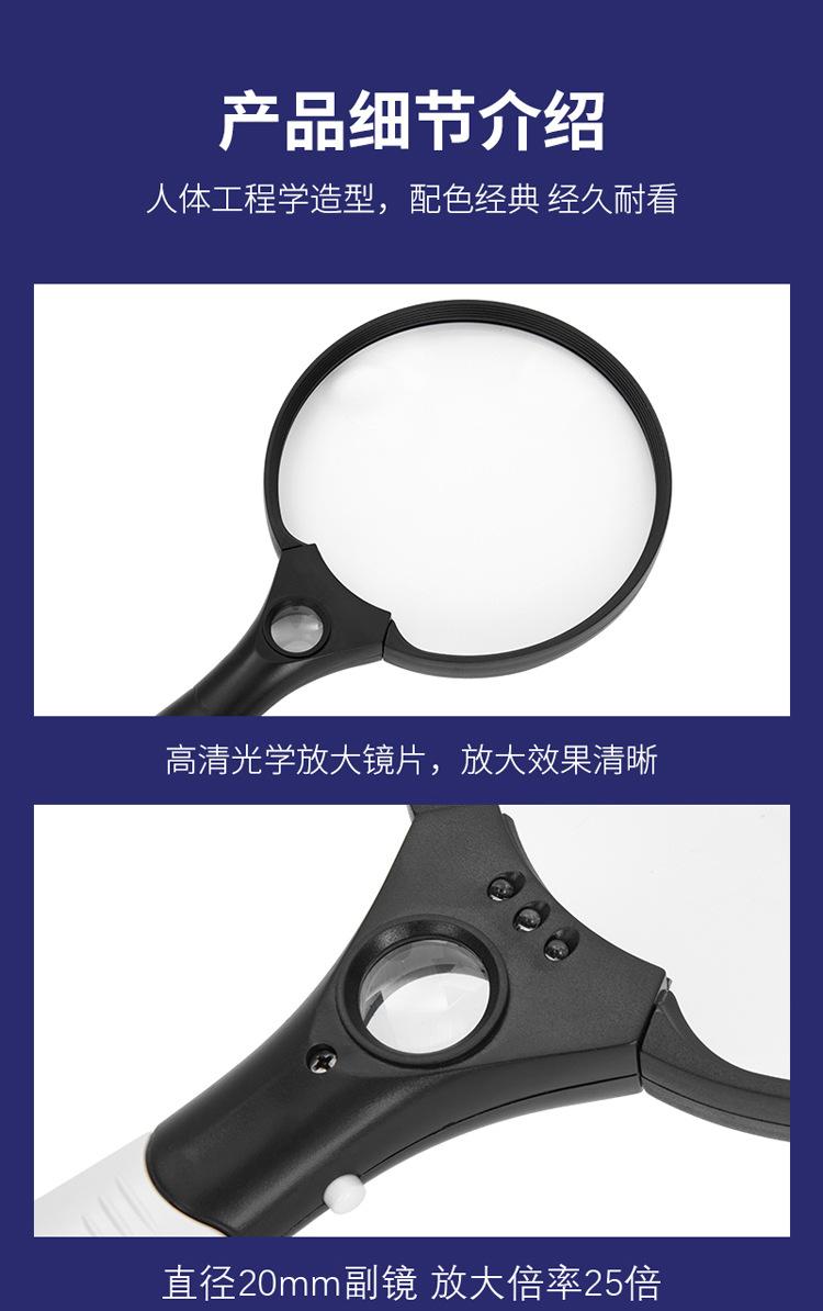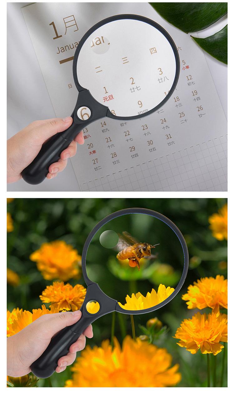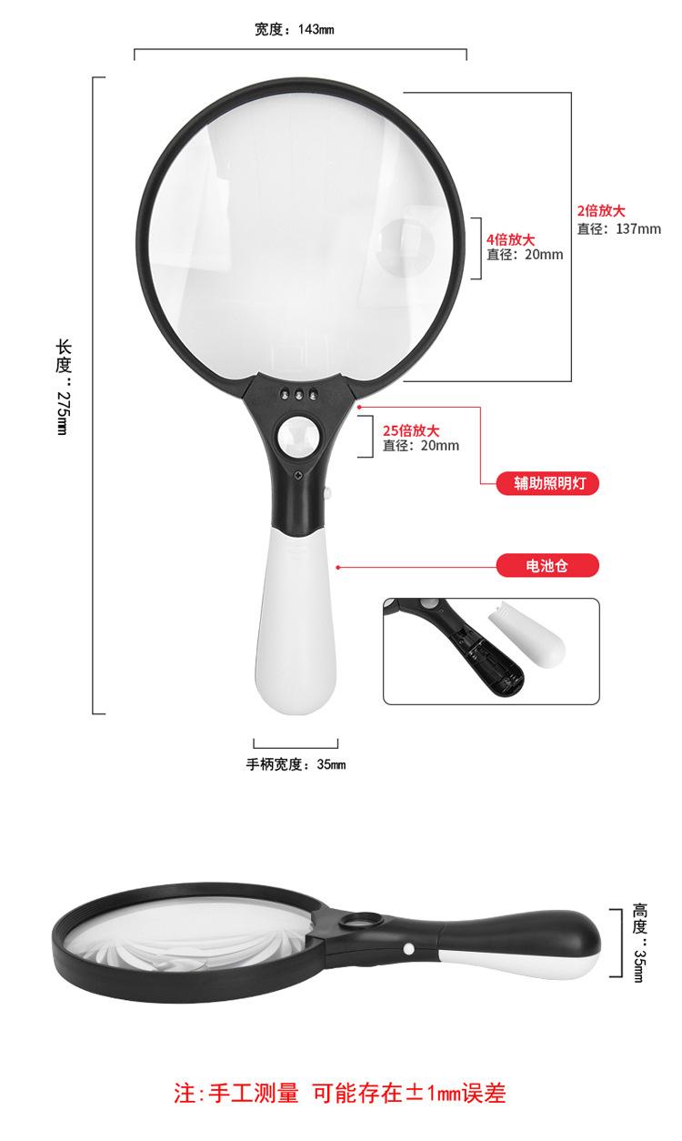 Lupa de mano lente grande de 137 mm lámpara 3LED 2 veces 4 veces 25 veces lectura para personas mayores lectura identificación colección