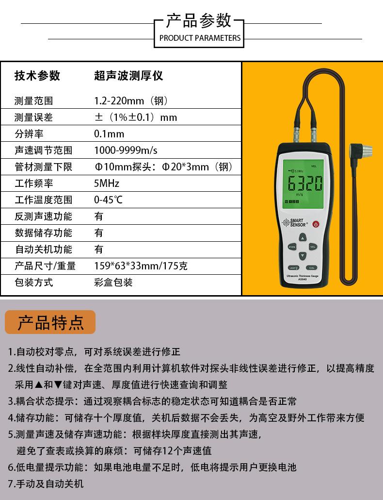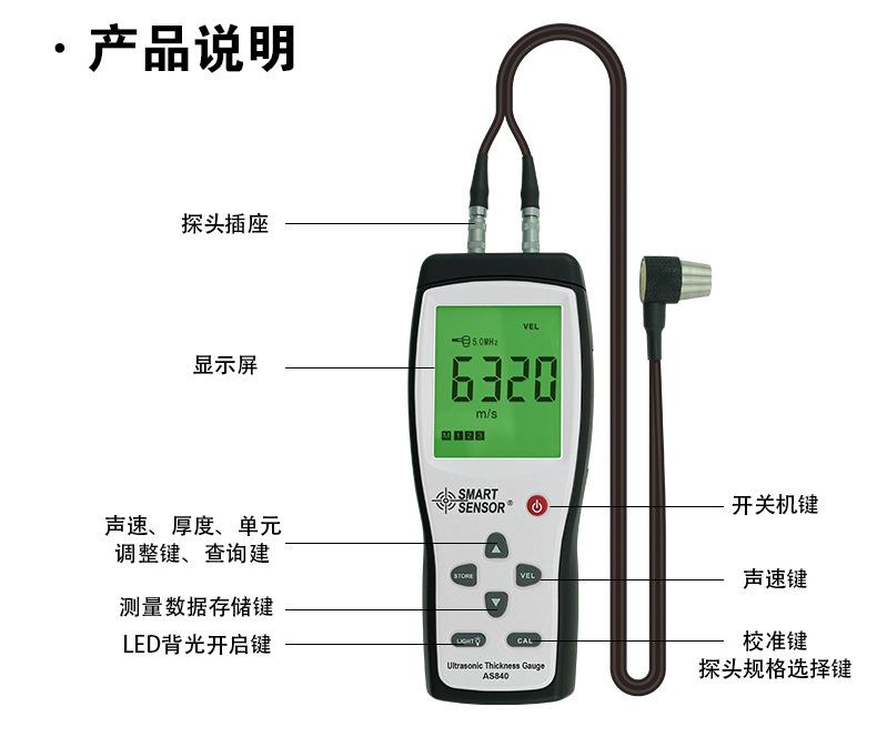 Xima As840 Medidor de Espesor Ultrasónico Placa de Acero Plástico Vidrio Metal Pantalla Digital Detector de Espesor Medidor de Espesor