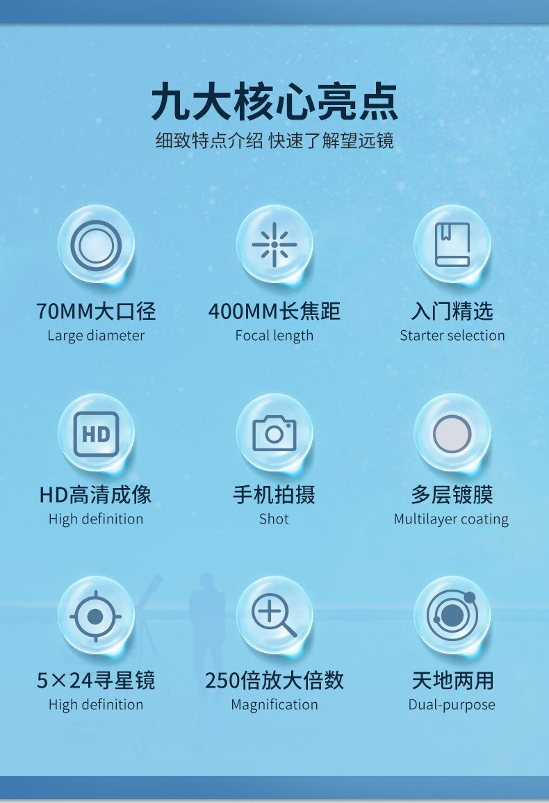 Telescopio astronómico 40070 de gran calibre y alta potencia para observación de estrellas, ideal para niños y exteriores.