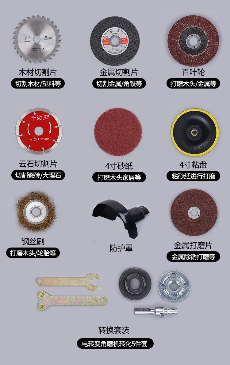 Conversion set of 5 pieces, A metal cutting piece, Woodworking saw blade 4*28, One marble cutting piece, 5 pie...