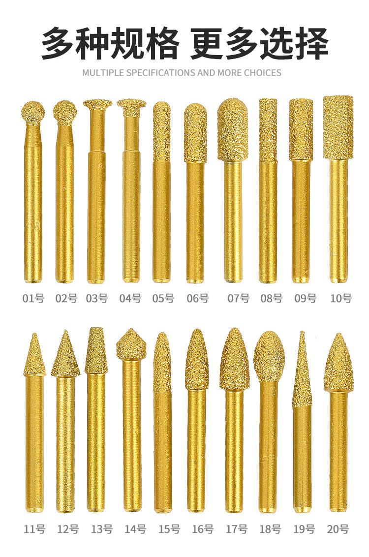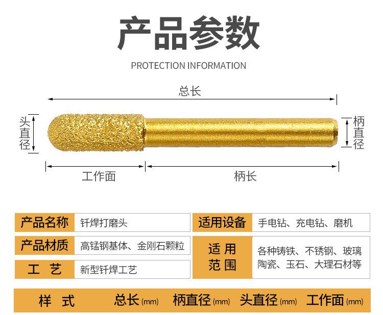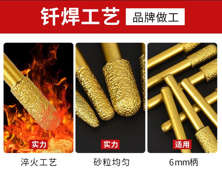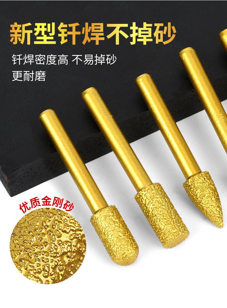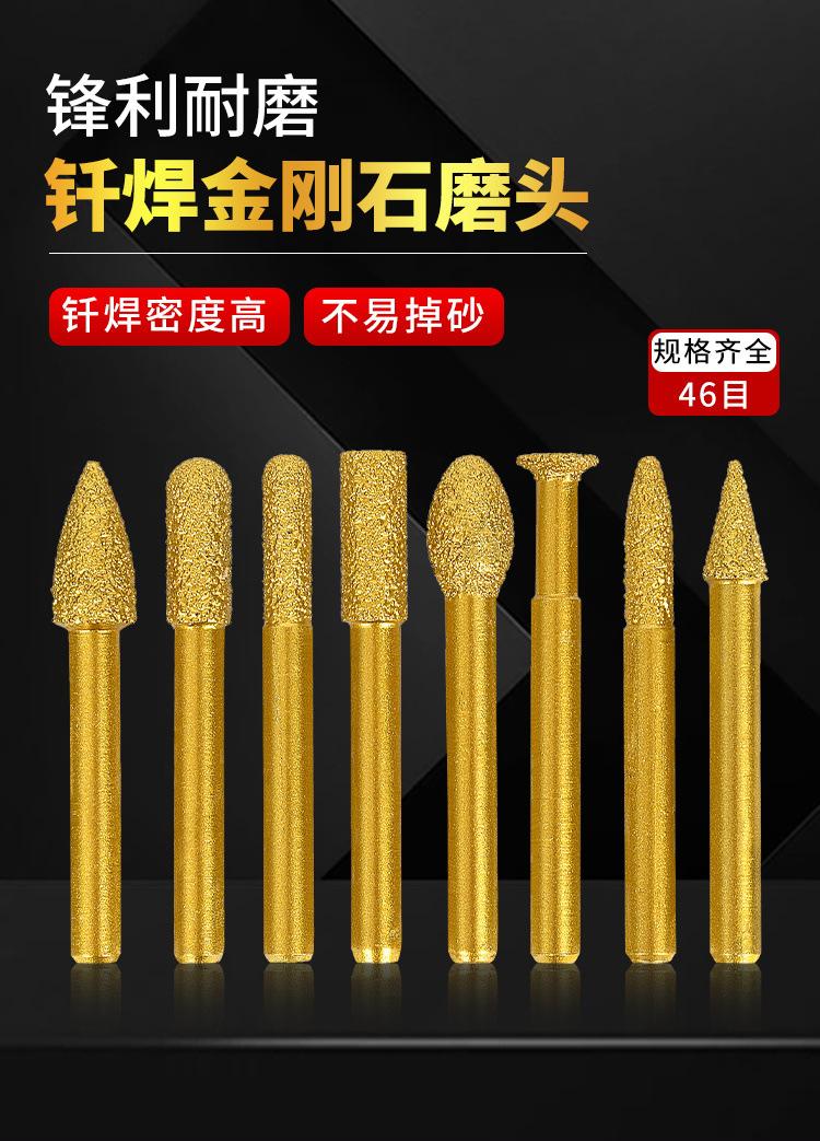 Cabeza de rectificado de diamante soldada aleación de hierro fundido varilla de rectificado piedra jade cerámica fresa de grabado juego de cabezas de rectificado al por mayor