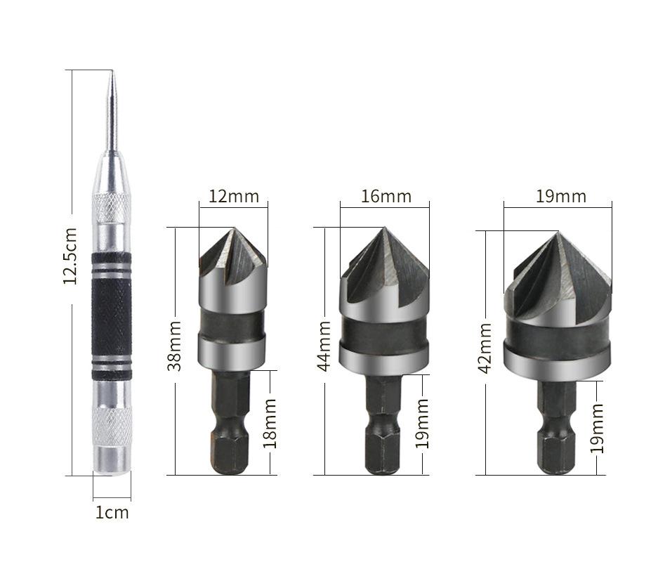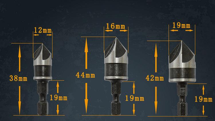 Biseladora de vástago hexagonal de cinco filos de 90 grados y 3 piezas de acero al carbono