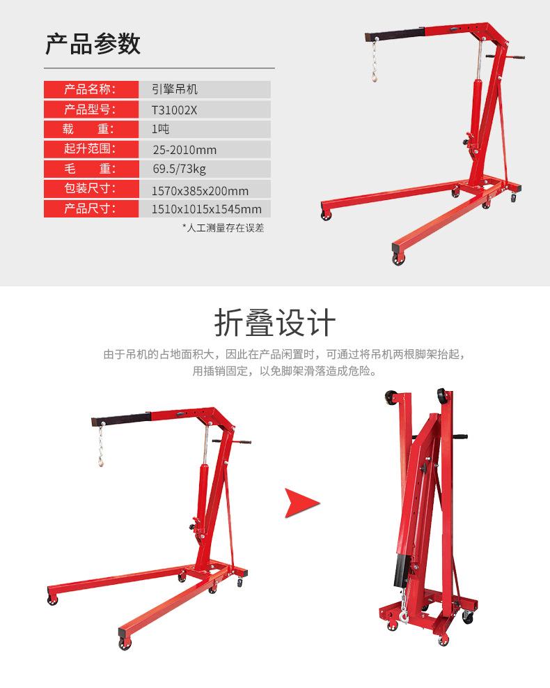 Grúa Plegable Tongrun Bigred 1 Tonelada Colgador Hidráulico para Motor de Coche Grúa para Motor 1 Tonelada