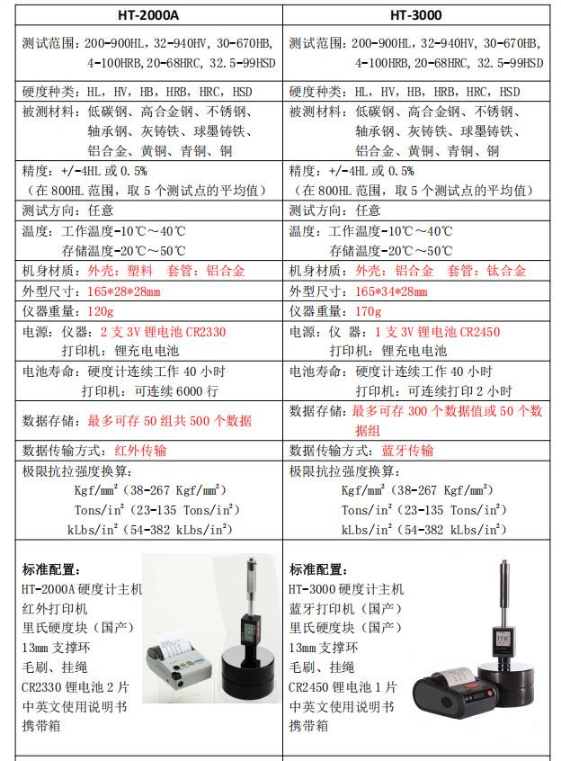 HT-1000A Richter de BolsilloProbador de durezay HT-2000A de bolsilloProbador de dureza LeebLa principal diferencia es que la configuración estándar del HT-2000A está equipada con una microimpresora infrarroja. Las demás funciones son las mismas.