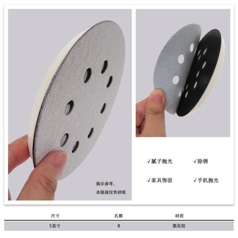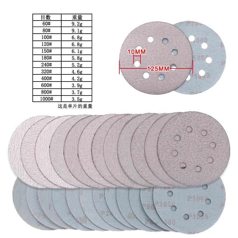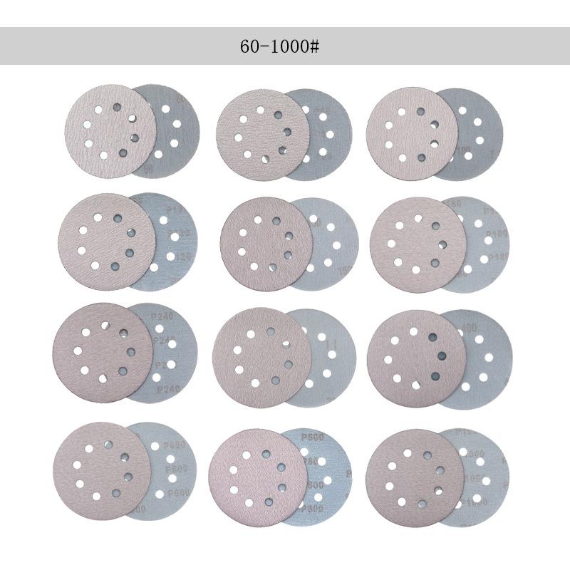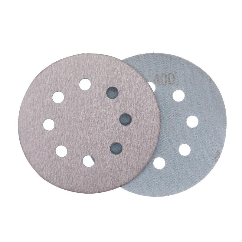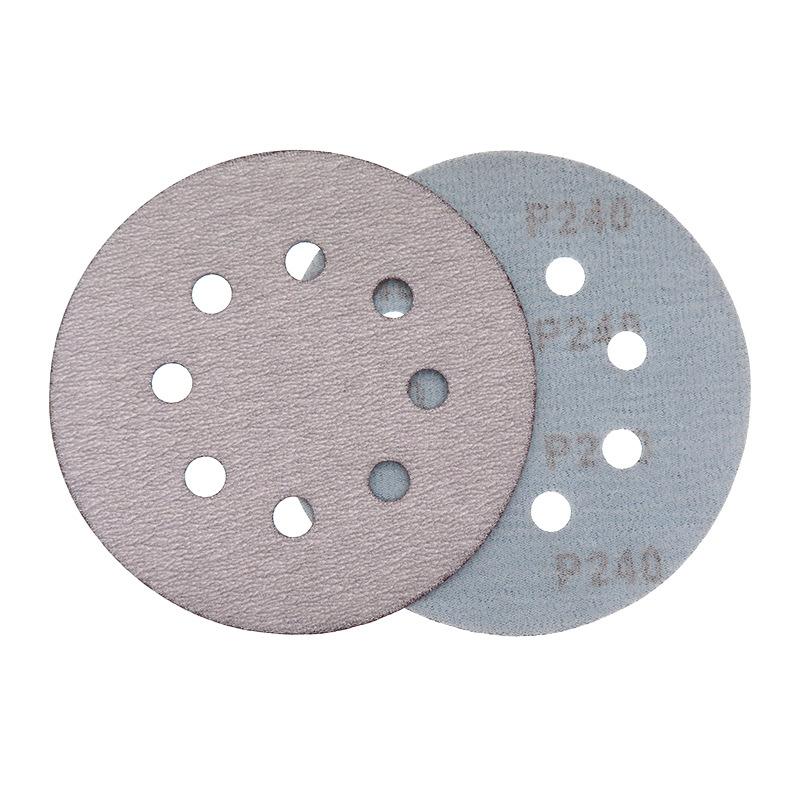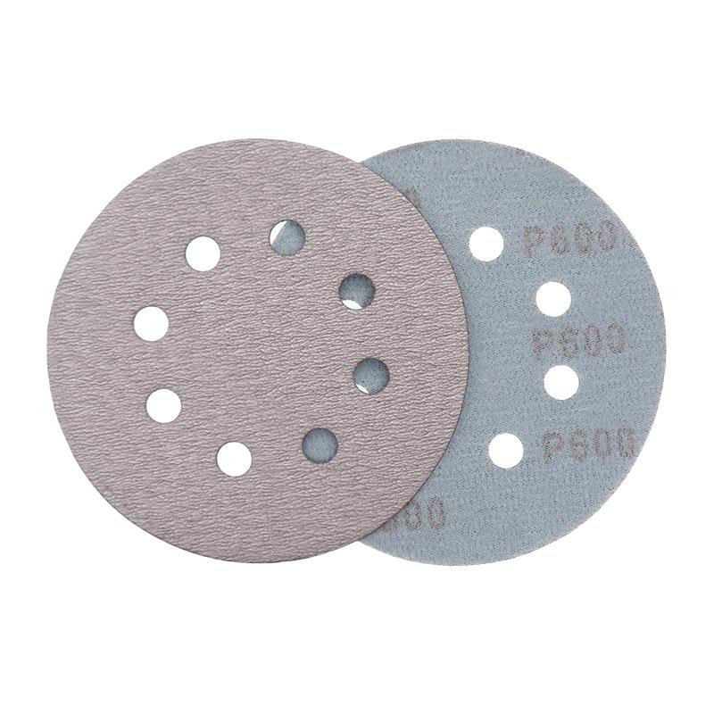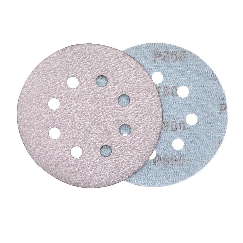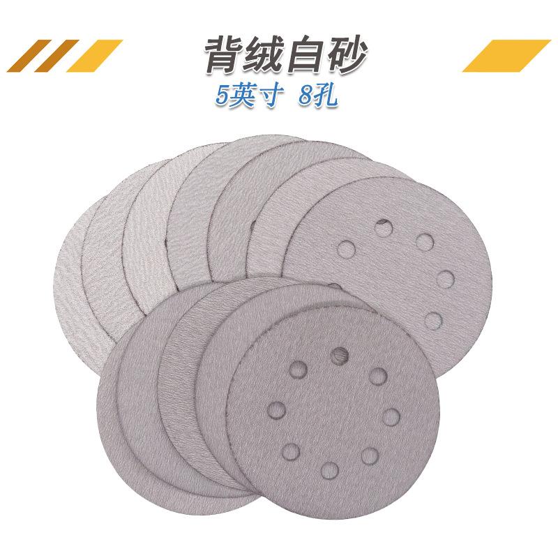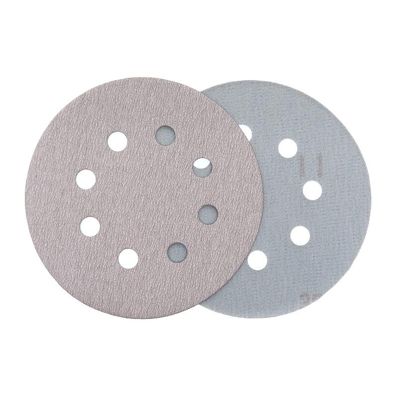 Disco de Lija Blanco de 5 Pulgadas con 8 Agujeros con Respaldo de Tela, Lija para Carpintería y Pulido de Muebles, Lija Autoadhesiva, Lija Flocada para Lijado en Seco