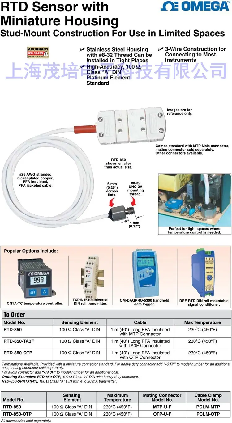 Termómetro de resistencia RTD sensor RTD Omega USA RTD-850, RTD-850-B, RTD-850-TA3F-OTP