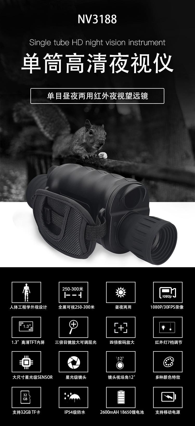 Visión nocturna verde, visión nocturna infrarroja, alta definición, alta potencia, visión nocturna digital, reconocimiento de campo, venta al por mayor transfronteriza