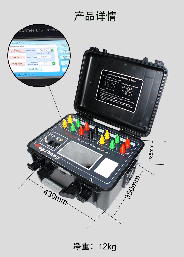 | Rango de medición | Prueba trifásica: 5A+5A: 2mΩ~1,2Ω 1A+1A:10mΩ~6Ω 200 mA + 200 mA: 100 mΩ ~ 30 Ω 20 mA + 20 mA: 10 Ω ~ 200 Ω Prueba monofásica: 10 A: 1 mΩ ~ 2 Ω 5 A: 2 mΩ ~ 4 Ω 1 A: 10 mΩ ~ 20 Ω 200 mA: 100 mΩ ~ 100 Ω 20 mA: 10 Ω ~ 20 kΩ |