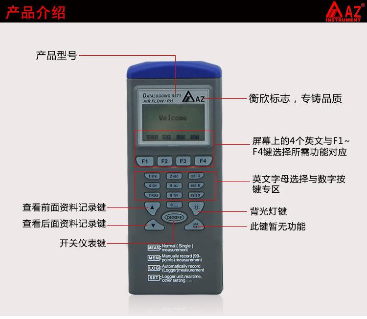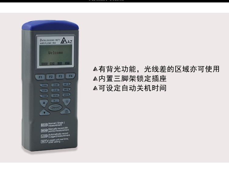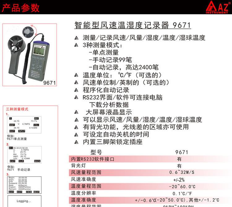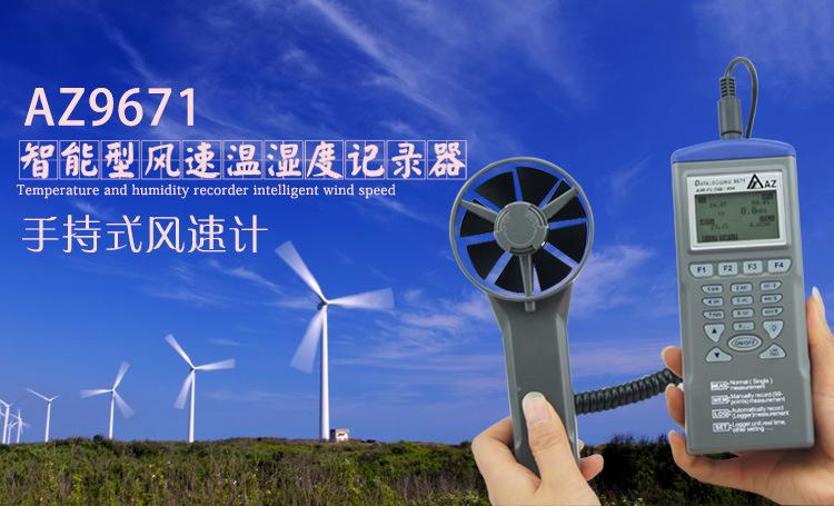 Registrador portátil de velocidad del viento y volumen de aire AZ9671 de Taiwán Hengxin, registrador inteligente de velocidad del viento, temperatura y humedad.