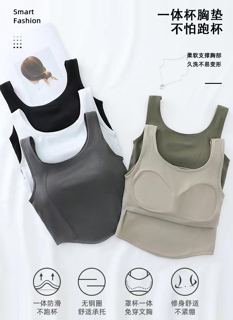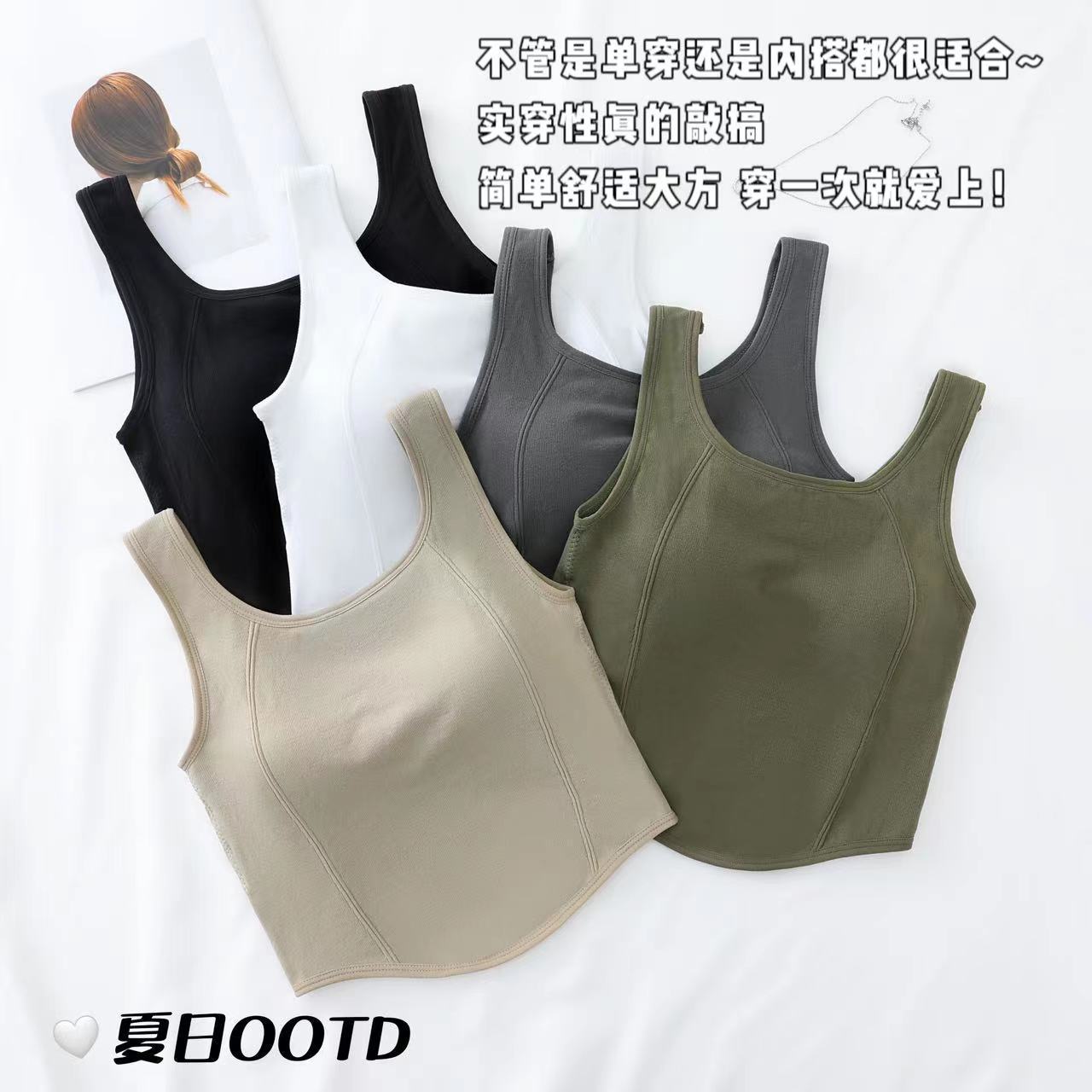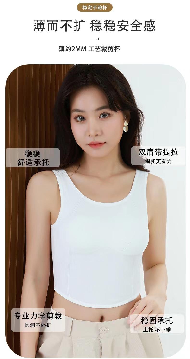 Sujetador camisola de una pieza para uso interior y exterior de verano fino con almohadilla para el pecho, copa fija, transpirable, envuelto en el pecho, tubo superior para mujer