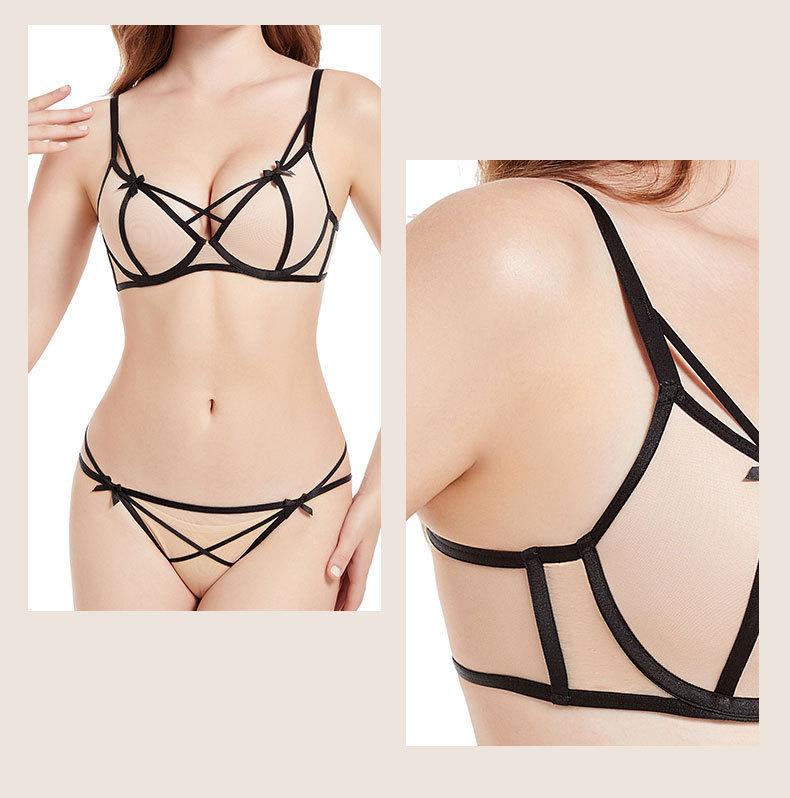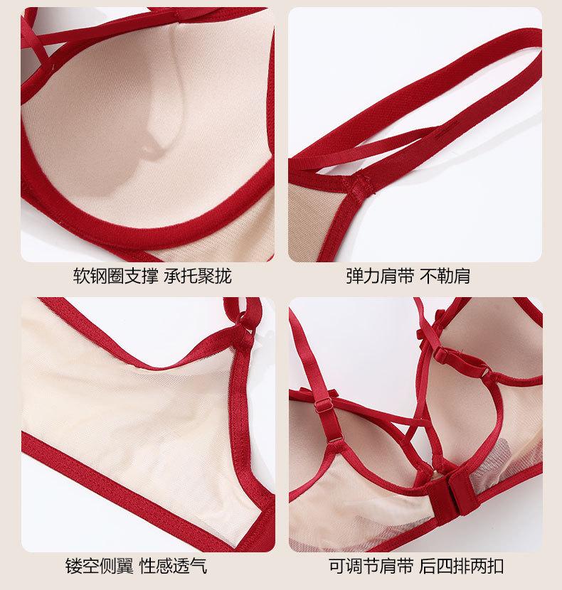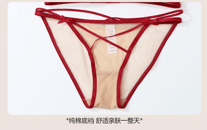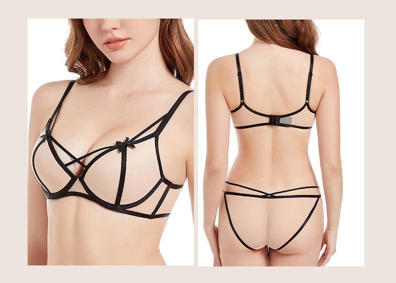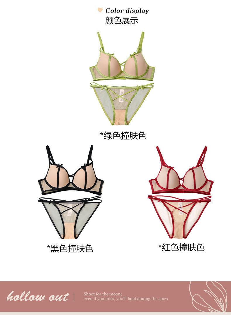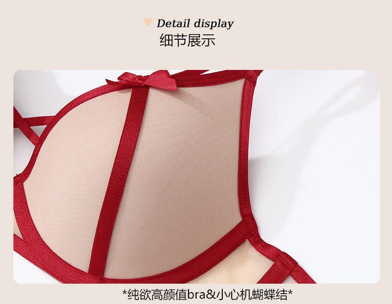 Ropa interior sexy de estilo francés de verano con tirantes finos y lazo de encaje, sujetador push-up antiflacidez con pecho pequeño.