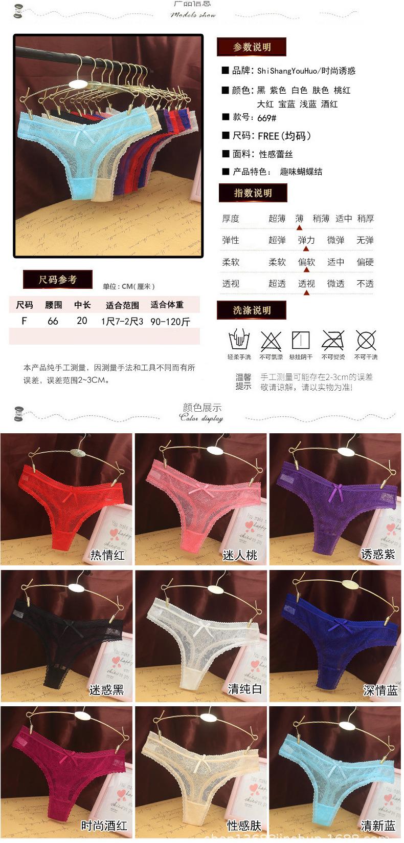 Nueva ropa interior de encaje jacquard para mujer, tanga de cintura baja, ropa interior transparente para mujer, pantalones de algodón, pantalones sexis tipo camiseta para mujer 669