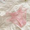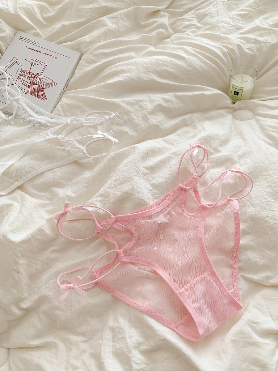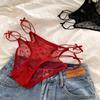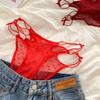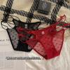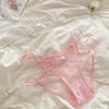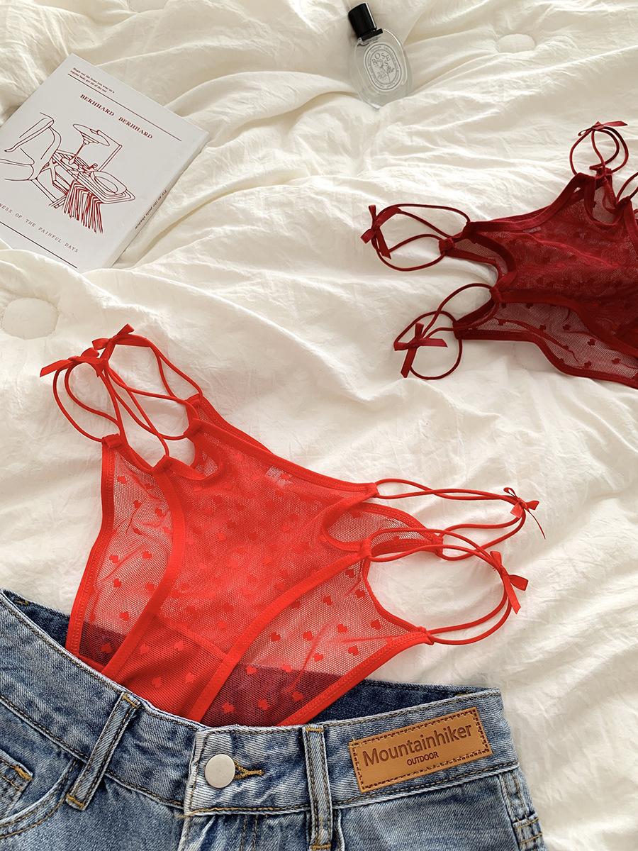 Ropa interior sexy de encaje de pura lujuria, transpirable, con lazo hueco, de malla de color sólido, de cintura baja, tentación para niñas.