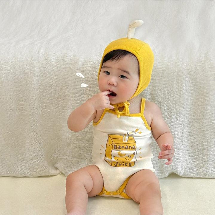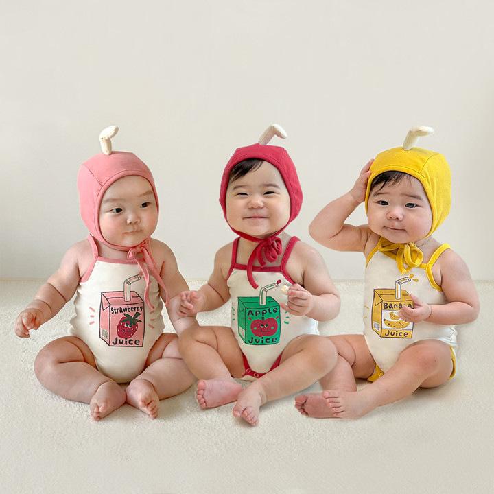 25 Verano Estilo Coreano Mameluco de Bebé Ins Forma de Bebida de Frutas Cabestrillo Harem Verano Protector de Vientre