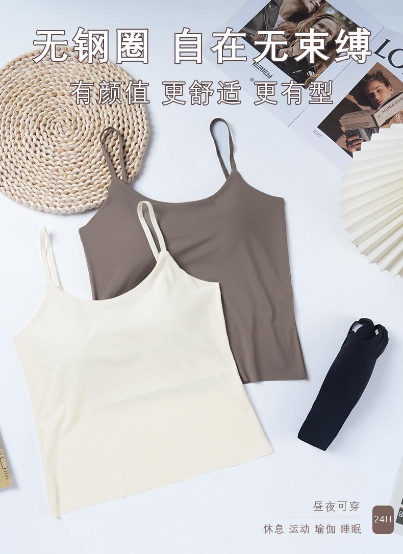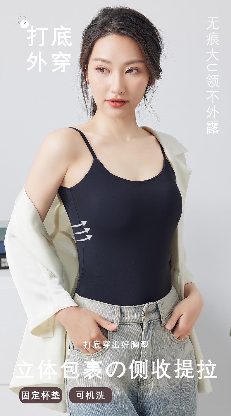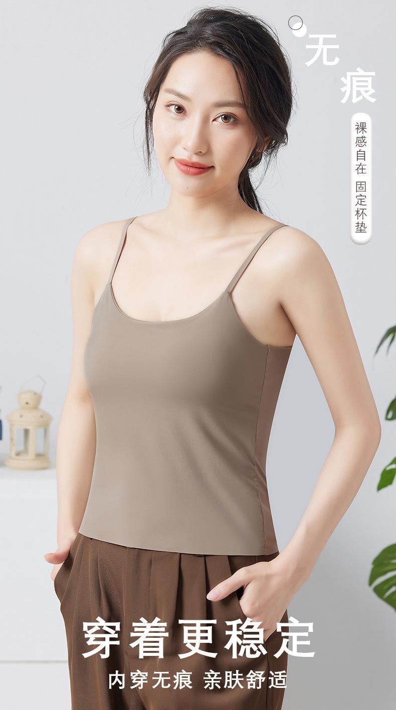 Camisola de seda helada Spice Girl para mujer, nueva, interior y exterior, con almohadilla para el pecho, parte superior de tubo con espalda descubierta y base fina.