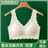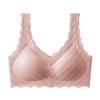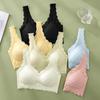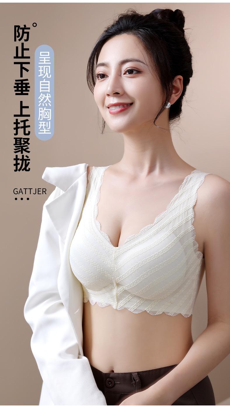 Sujetador push-up de encaje fino francés para mujer, sin aros, con parte superior colgante y antiflacidez, con escote pequeño