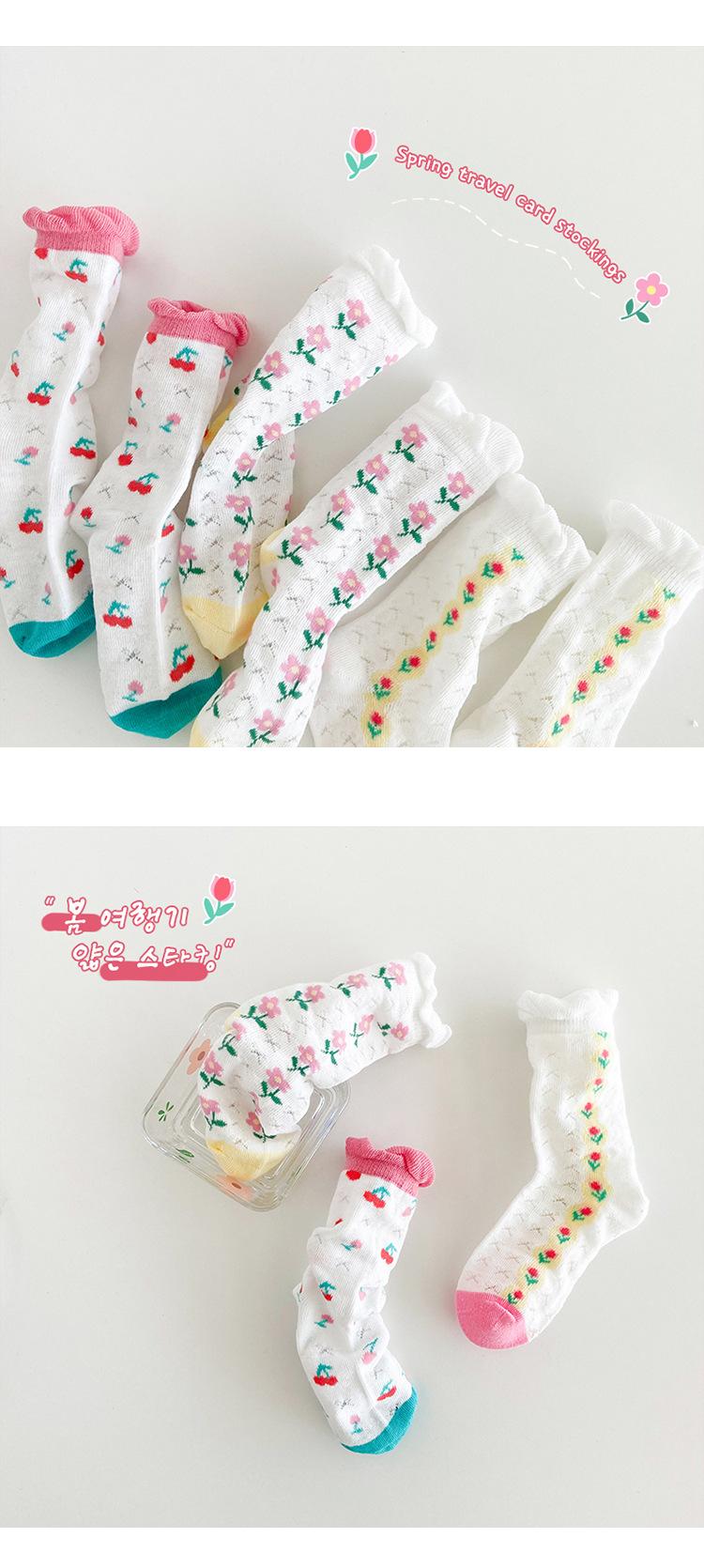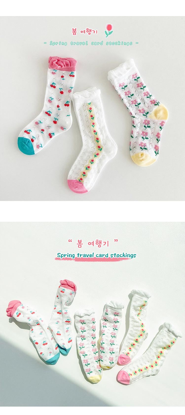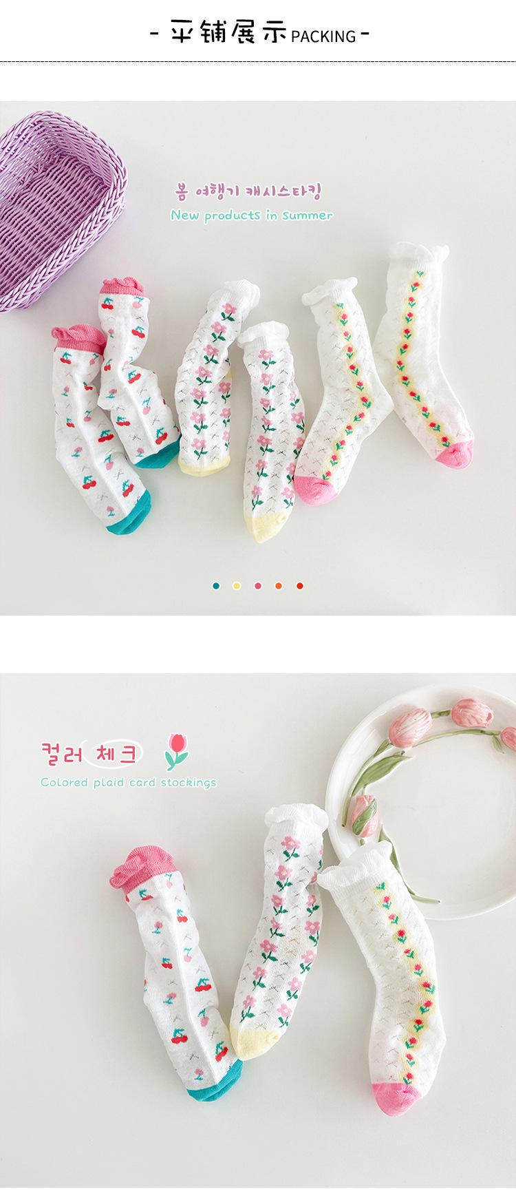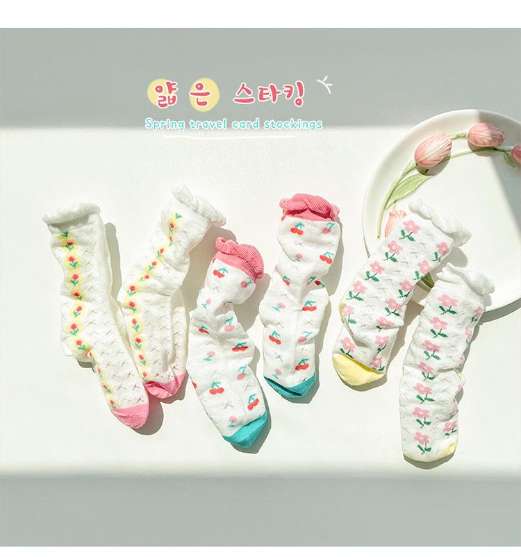 Calcetines para niños al por mayor verano dulce encaje calcetines para niñas malla transpirable flor pastoral calcetines de tubo para niños