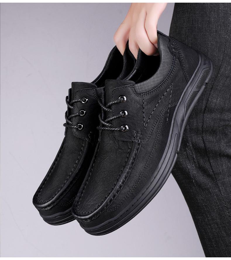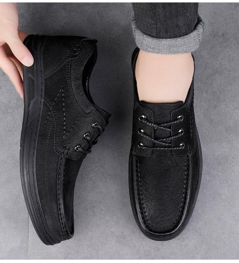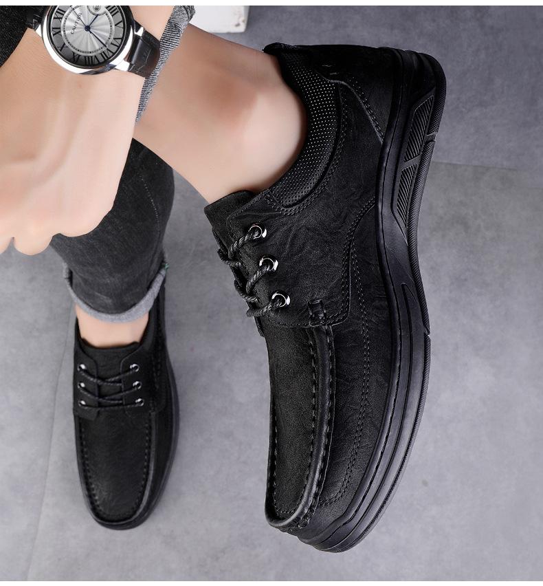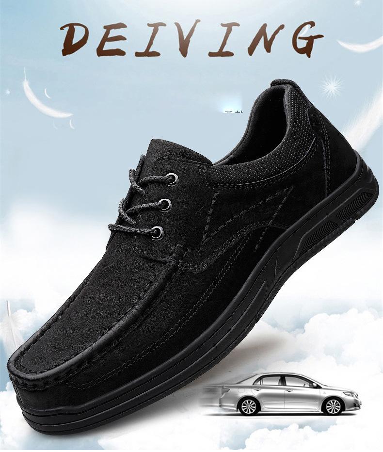 Zapatos casuales de cuero negro, nuevos zapatos Doug de suela suave, sin cordones, para hombre, zapatos de vestir de negocios para hombre.