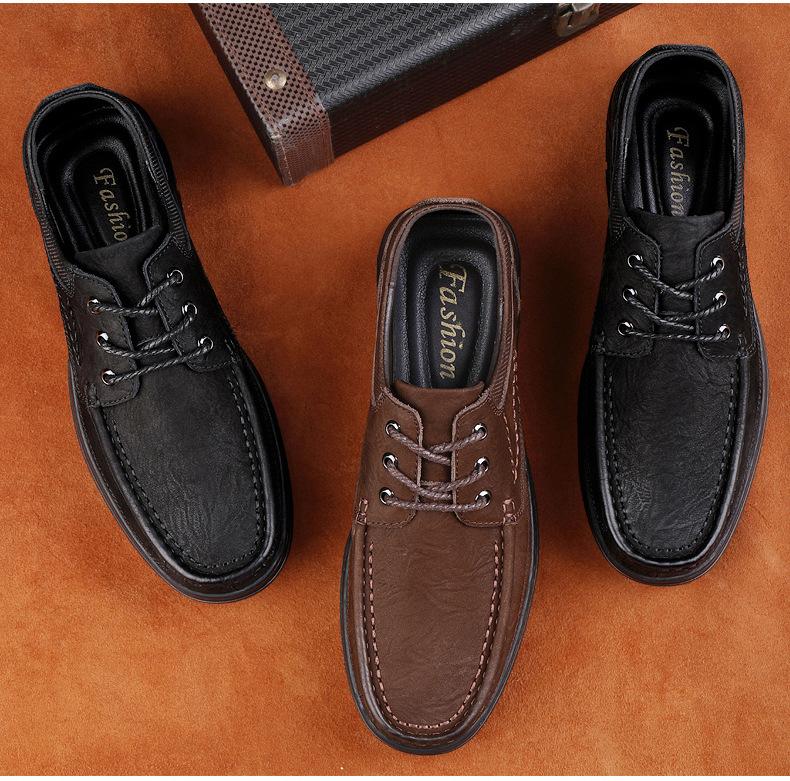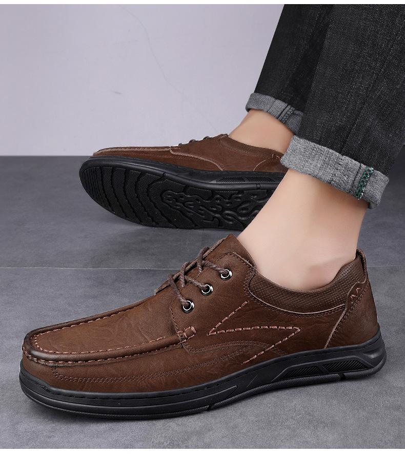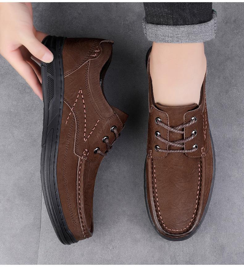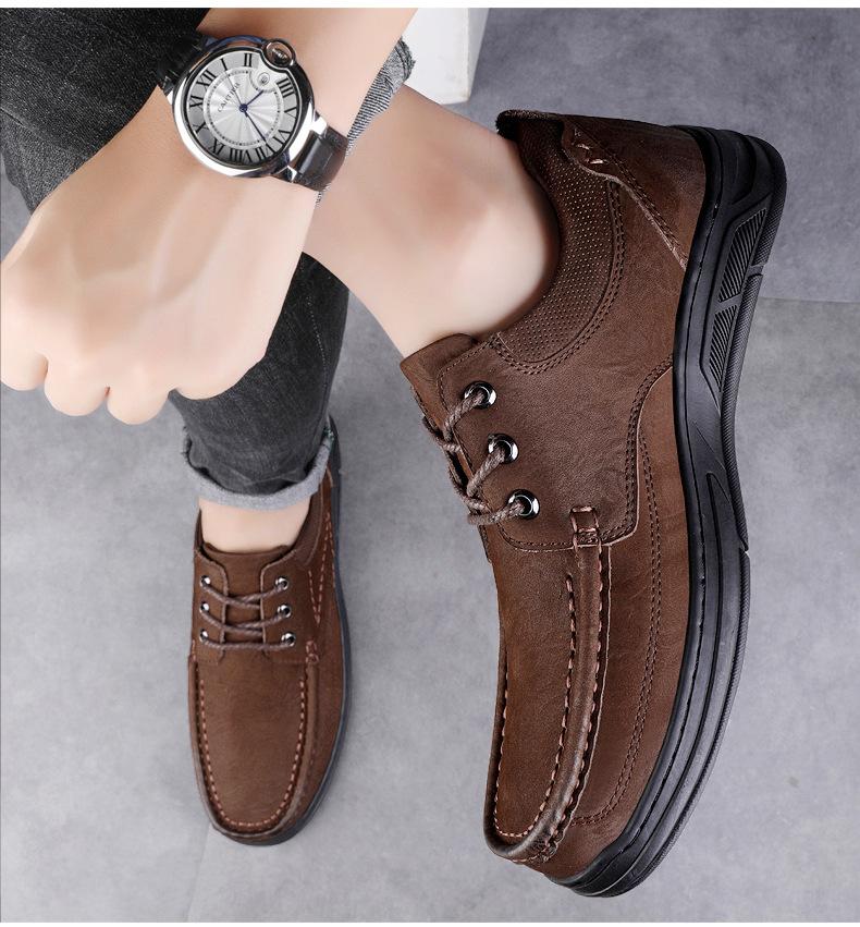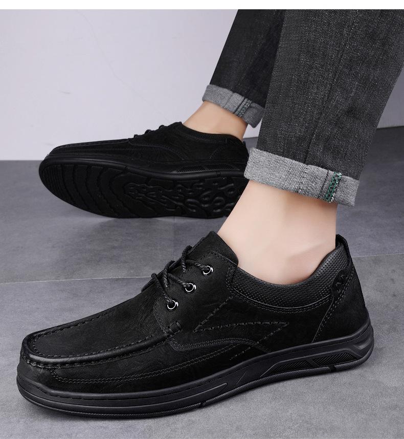Zapatos casuales de cuero negro, nuevos zapatos Doug de suela suave, sin cordones, para hombre, zapatos de vestir de negocios para hombre.