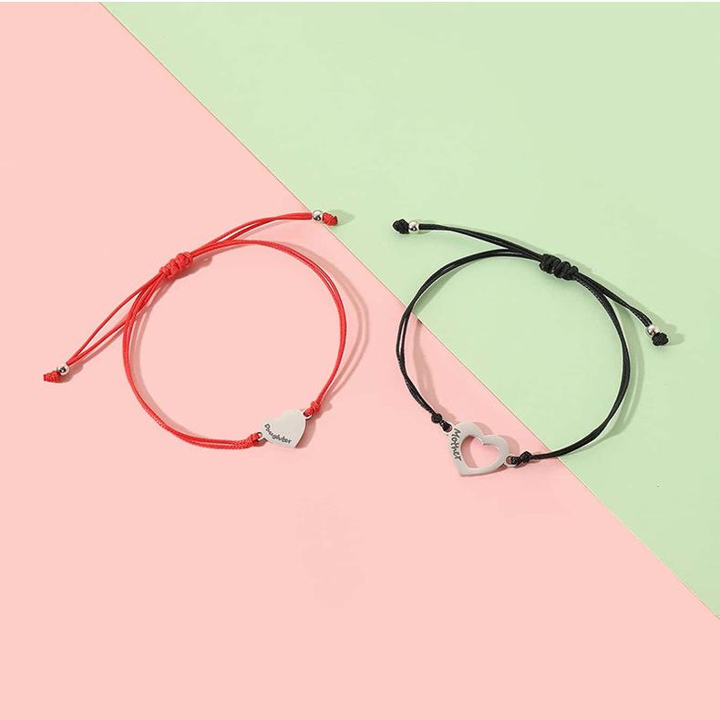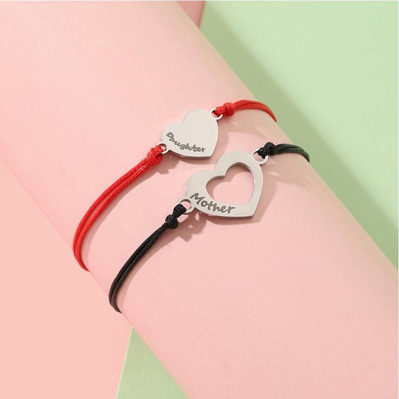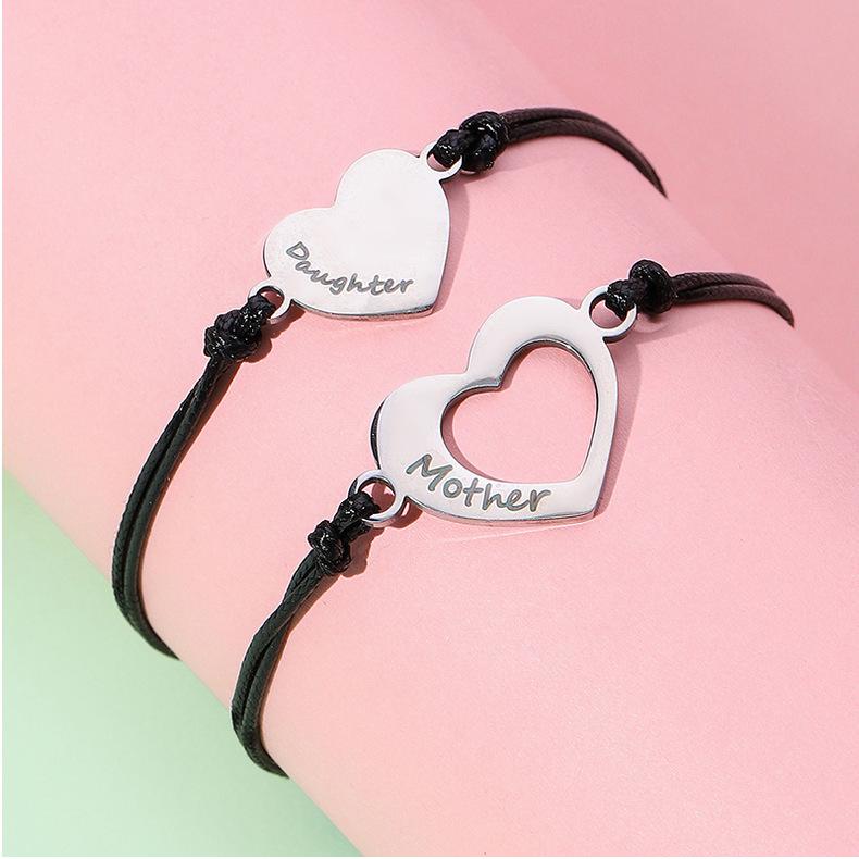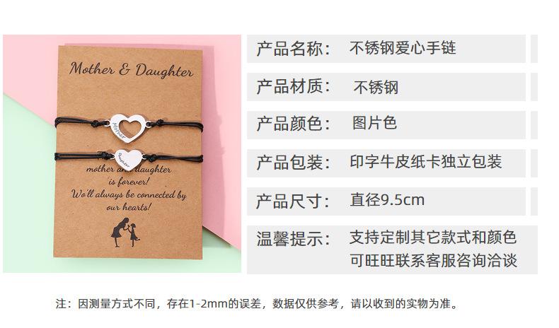 Pulsera Tejida de Cera con Tarjeta de Amor Hueca de Acero Inoxidable Moda Europea y Americana para Parejas Transfronterizas