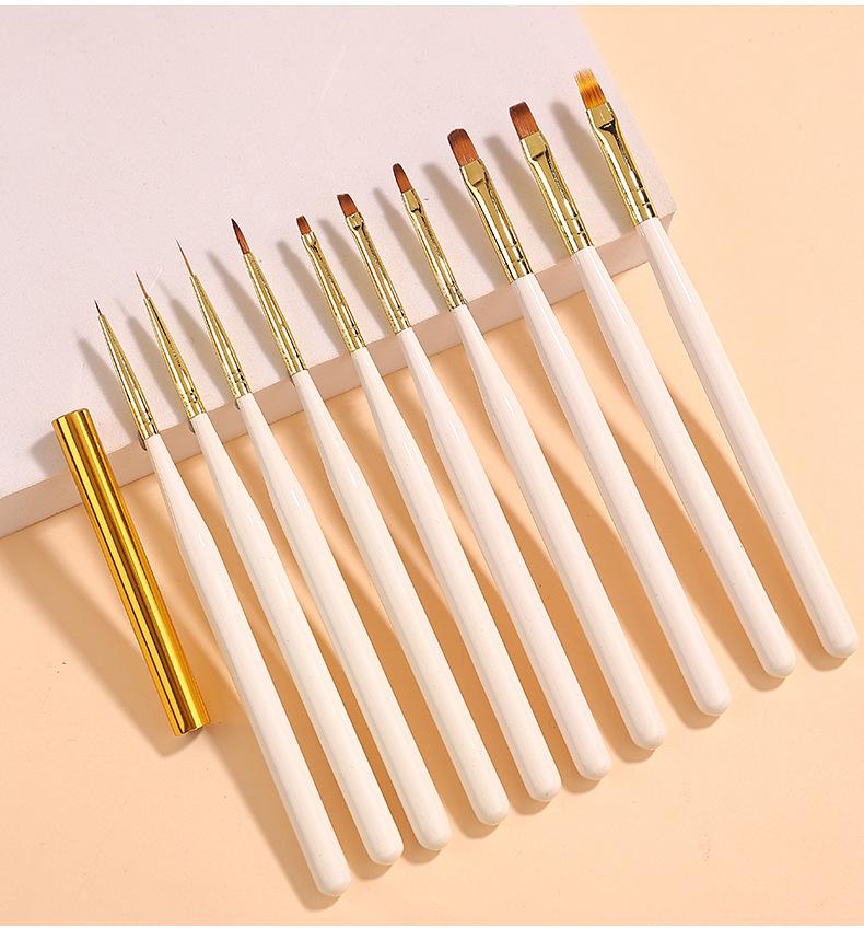 Set de Plumas para Arte de Uñas 10 Piezas Set Completo de Plumas de Pintura de Uso Común Dibujo con Alambre Pluma de Terapia de Luz Encaje Teñido Pincel de Margarita