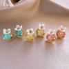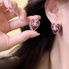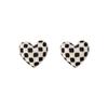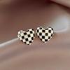 Aretes de Tuerca de Corazón a Cuadros de Moda con Postes de Plata, Aretes de Estilo Minimalista Coreano