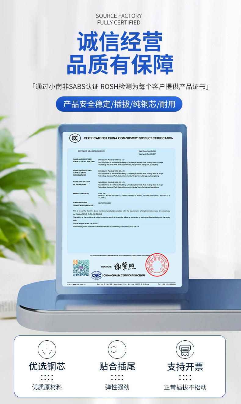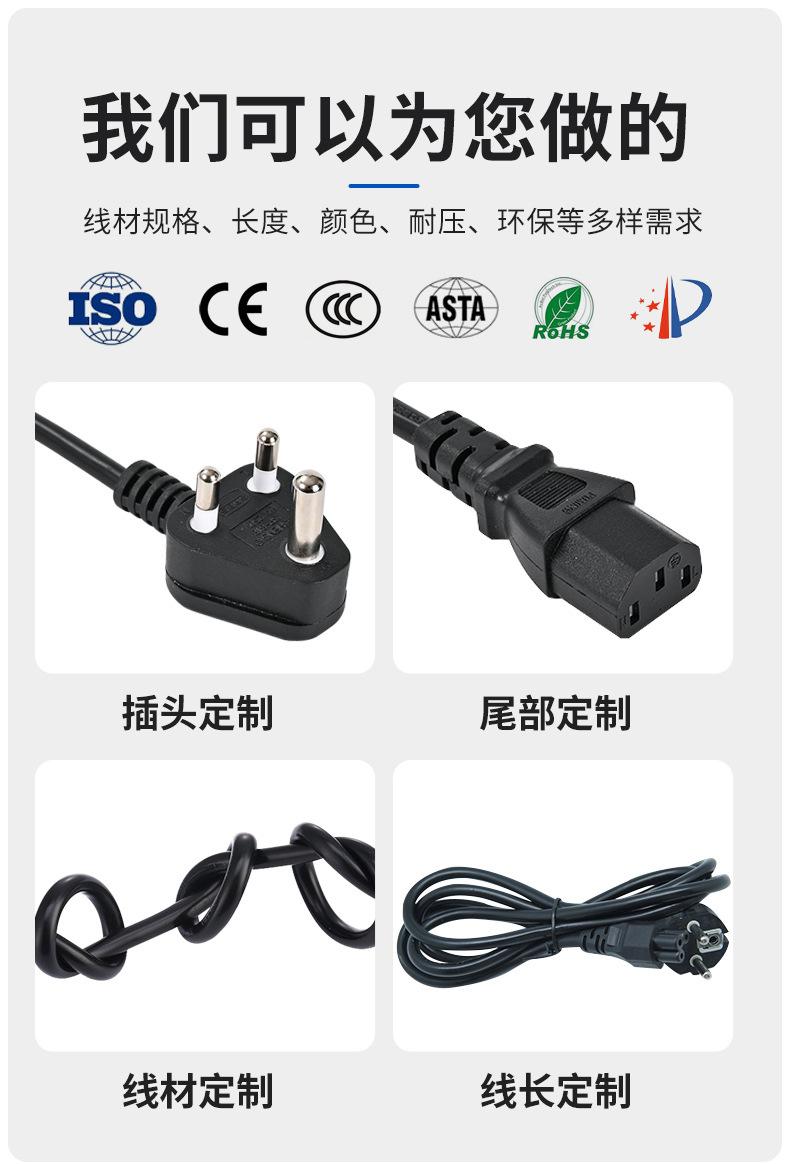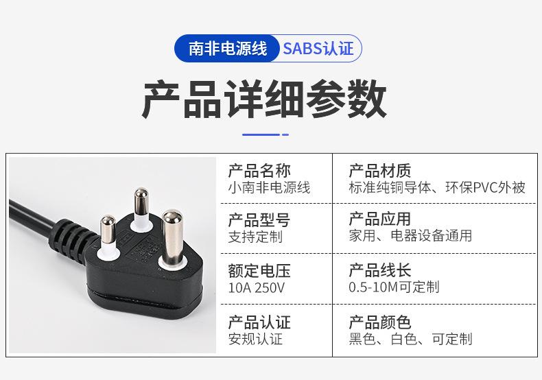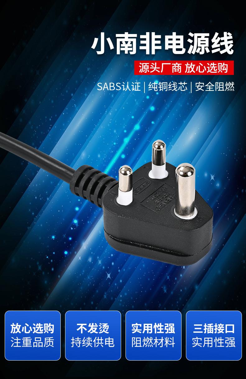 Ventas Directas de Fábrica Cable de Alimentación Pequeño Sudafricano de Tres Clavijas con Sufijo, Cable de Alimentación Indio de Tres Núcleos con Cola de Flor de Ciruelo Grande