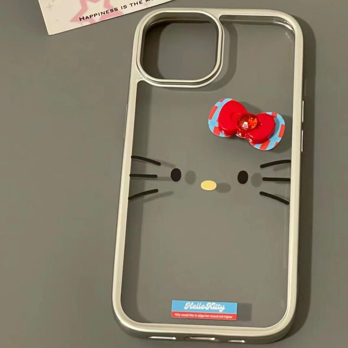 Bonita funda para teléfono móvil Apple 15/14promax/13 con expresión de gato KT, carcasa blanda transparente para XSmax/7P/8P, 12pro/11, XR/XS, sin patrón tridimensional