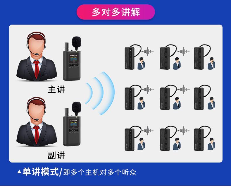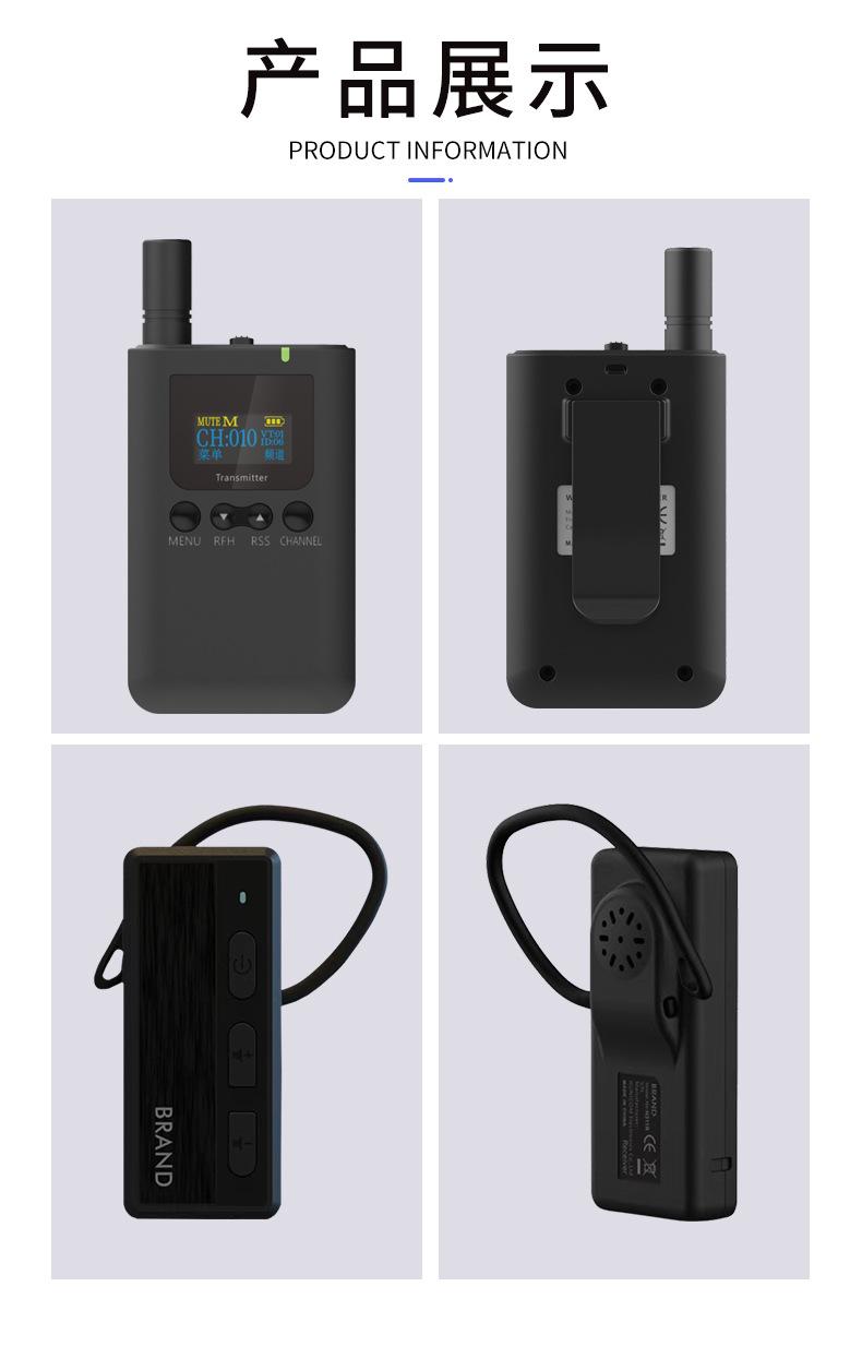 1 transmitter +20 earphone receivers +1 Charging Stand +1 storage bag