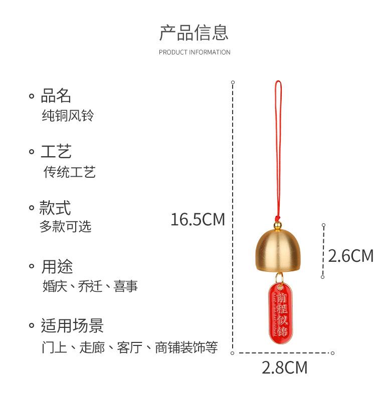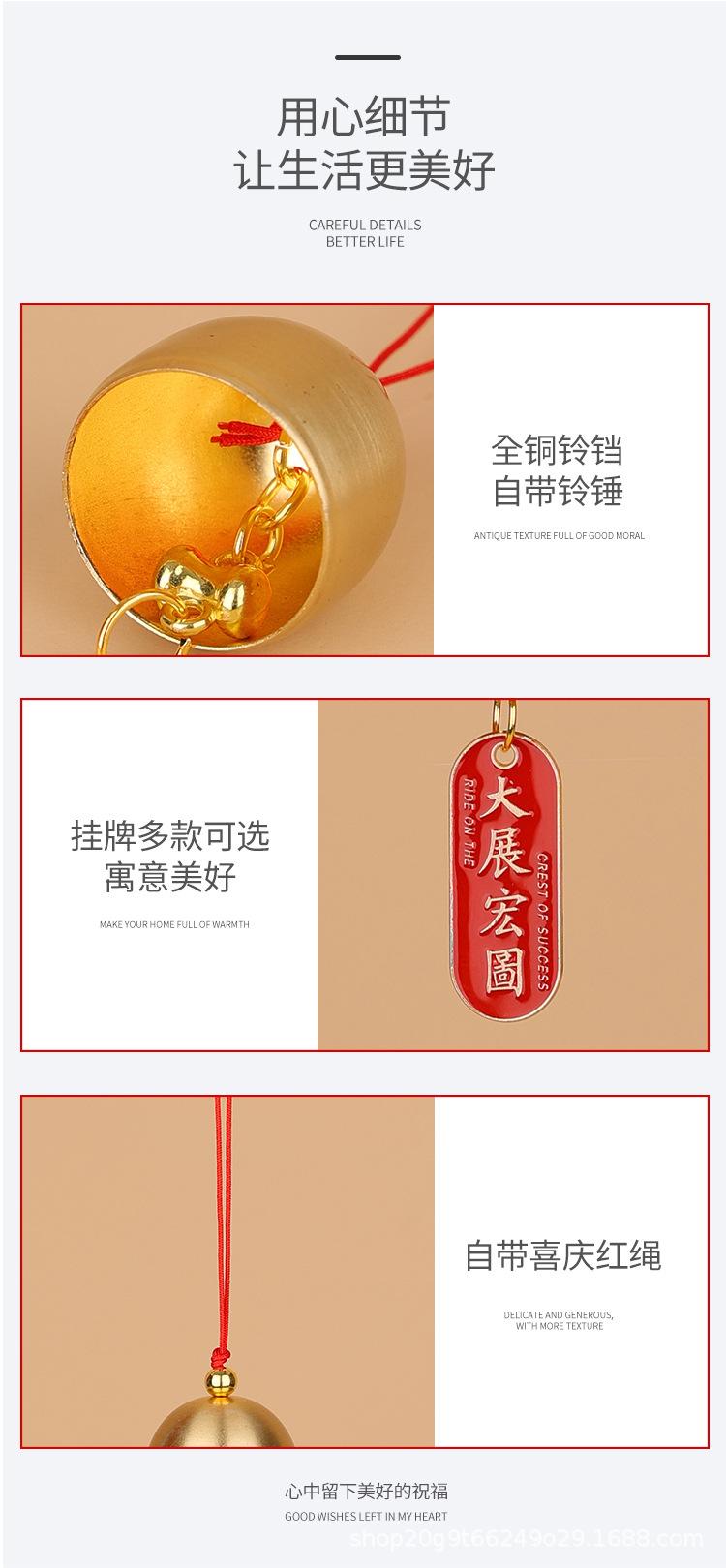 Campana de viento de metal colgante, decoración creativa, artesanías para el hogar, campana de viento de cobre, cobre puro, estilo chino para interiores.