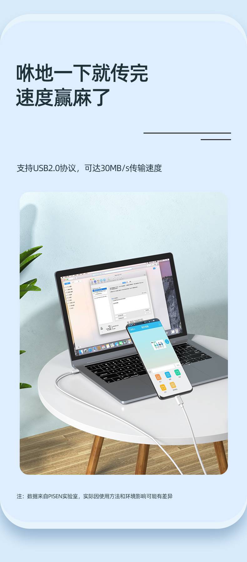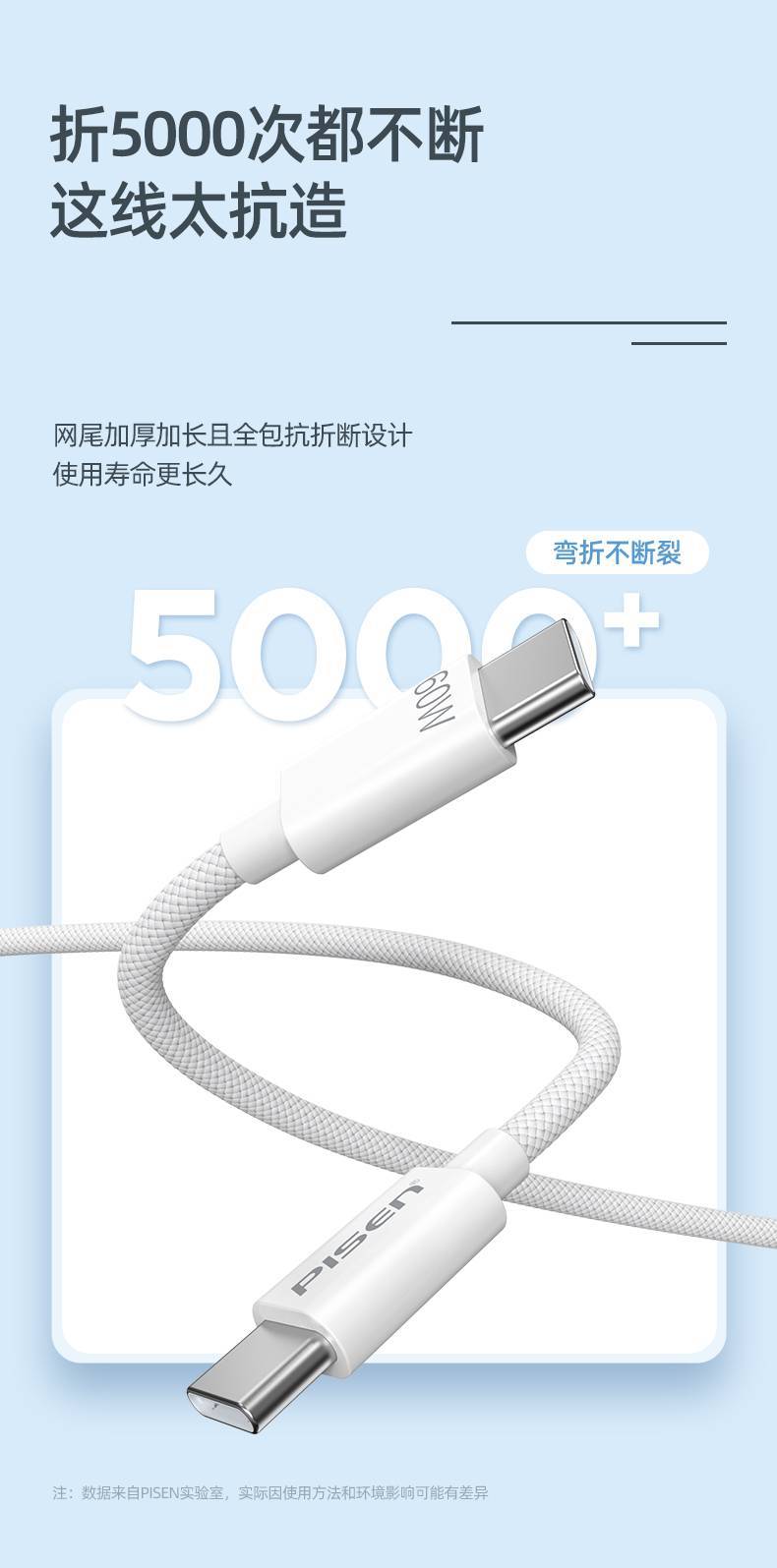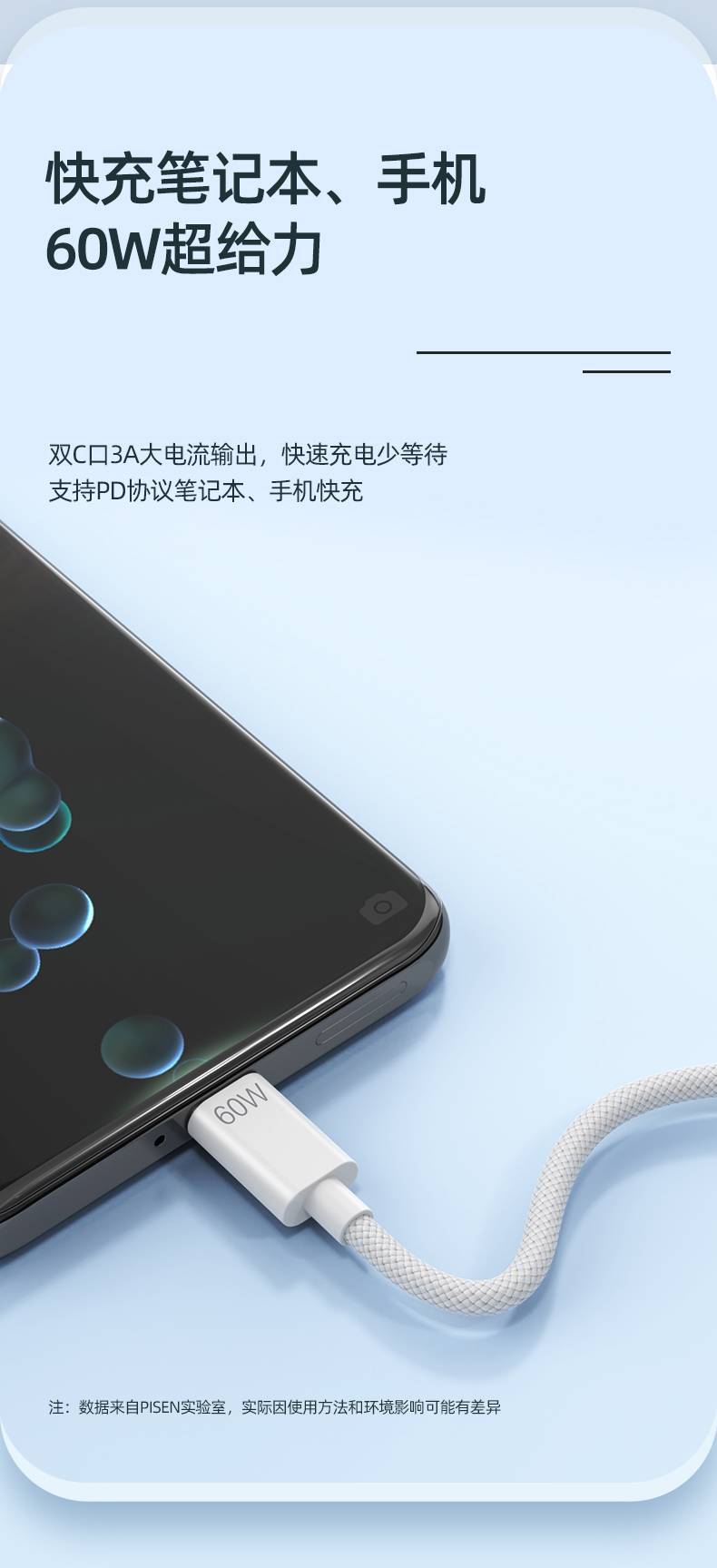 Cable de datos tipo C de doble cabezal Pinsheng para la línea de carga rápida PD60W de la serie Apple 15 y Promax 16