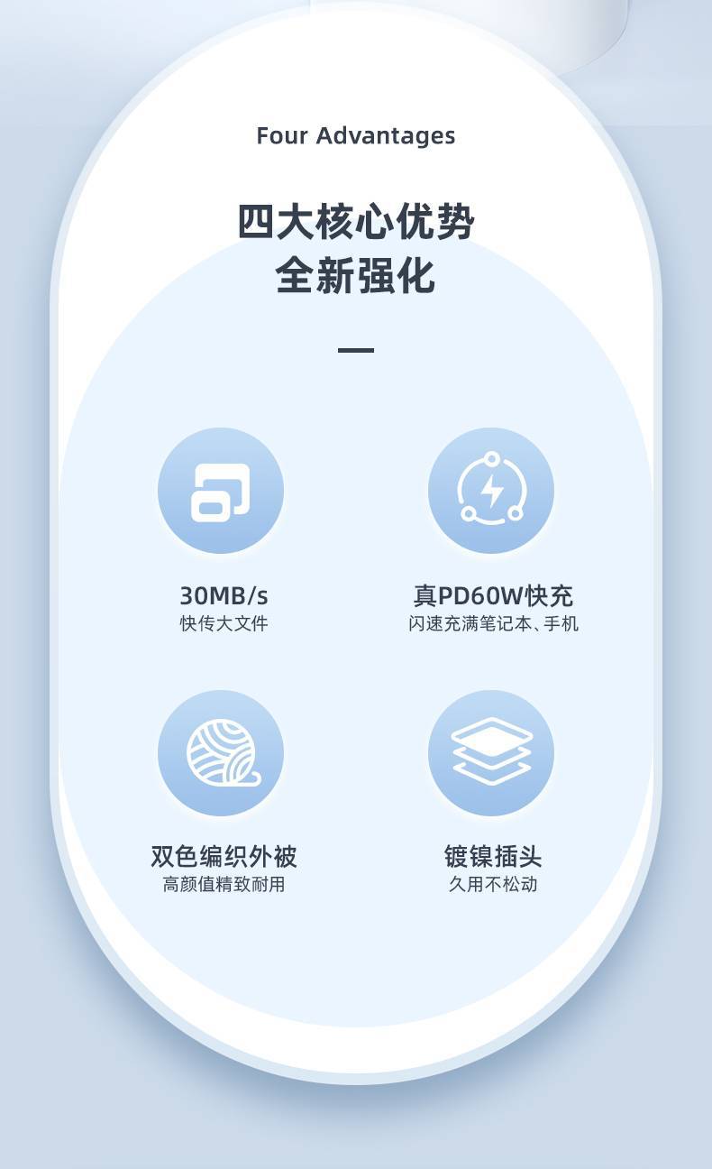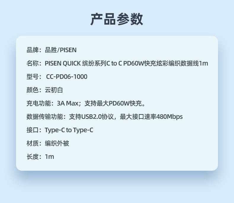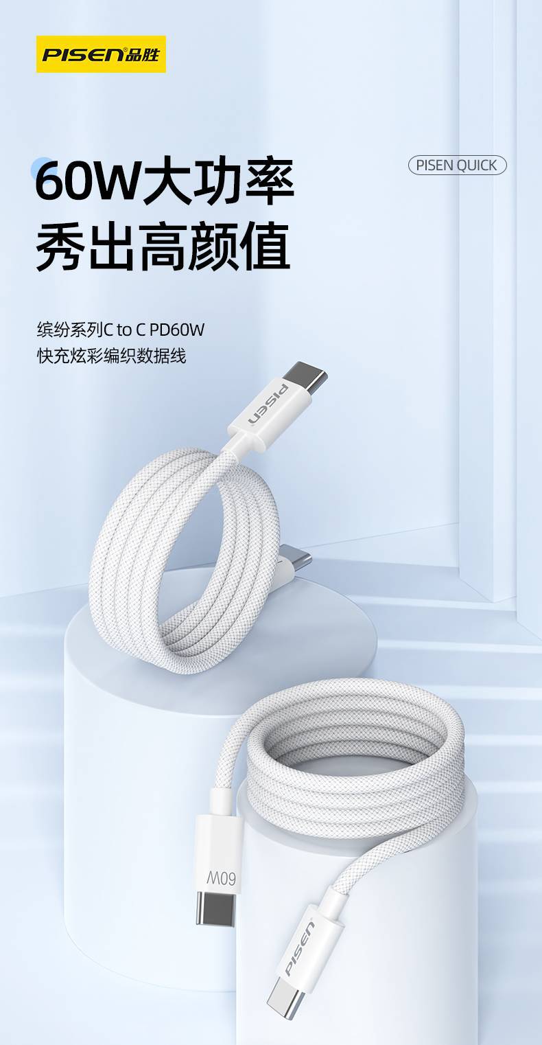 60W double-headed type-c colorful braided data cable (CC-PD06-1000) White 1 m