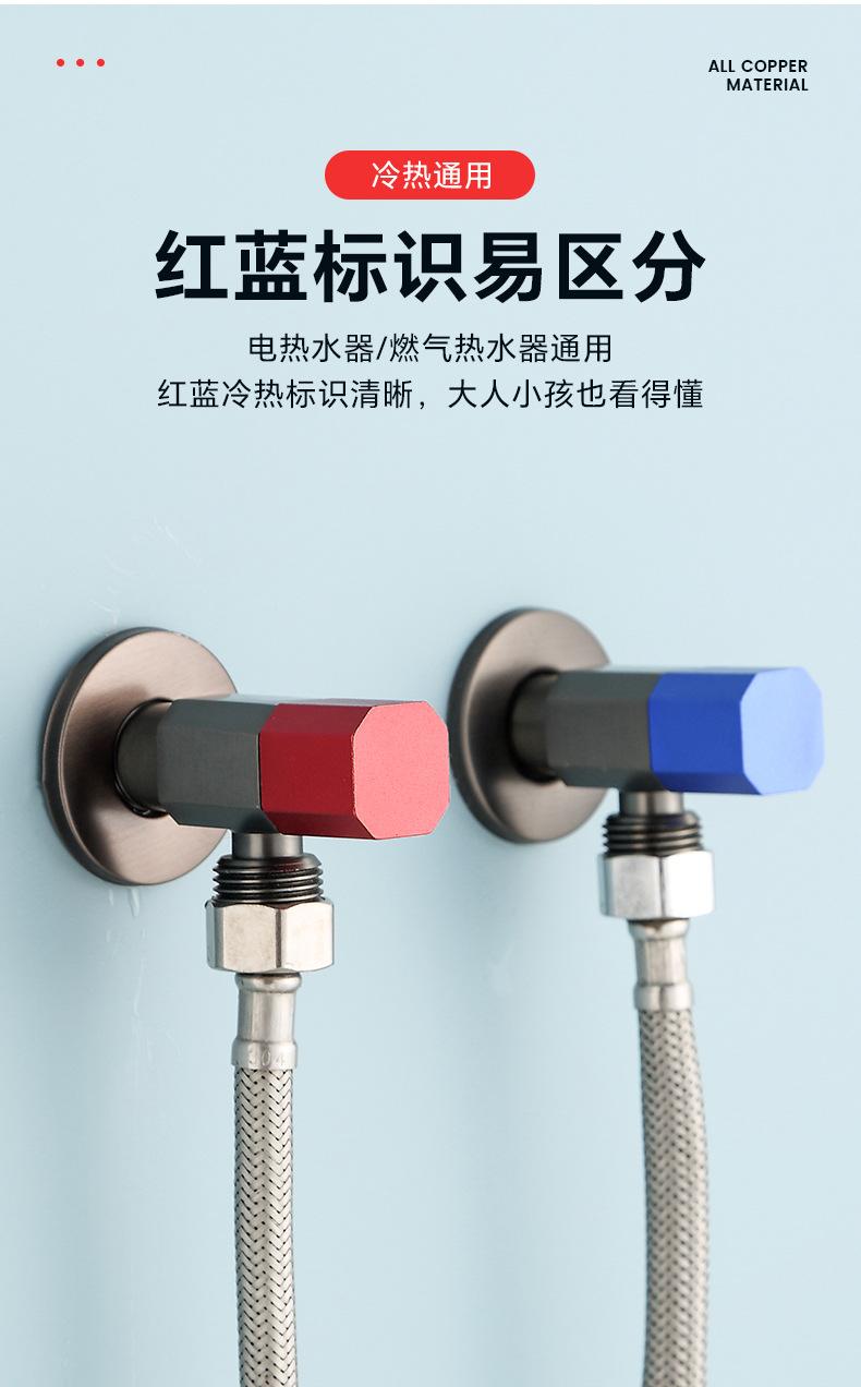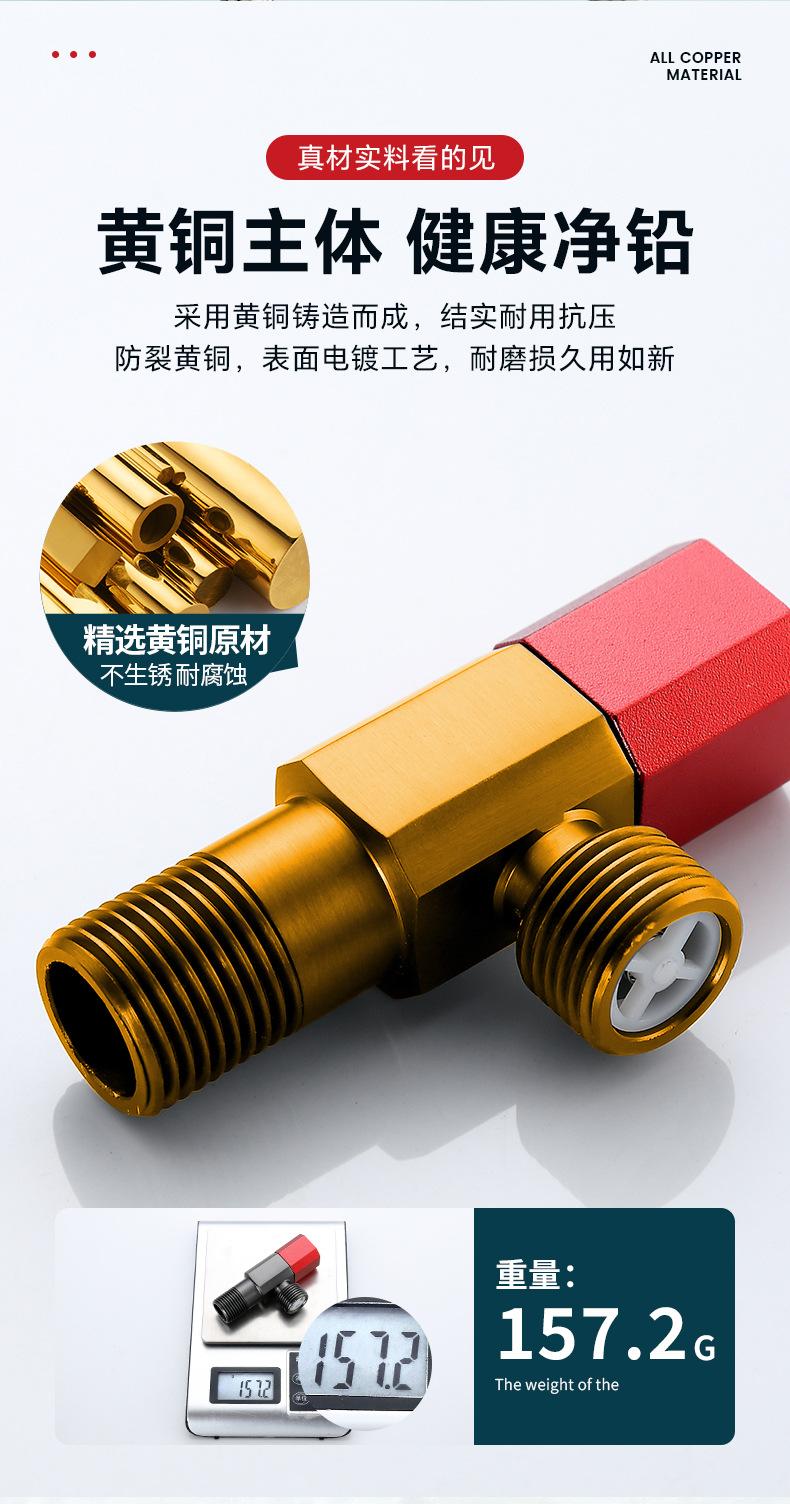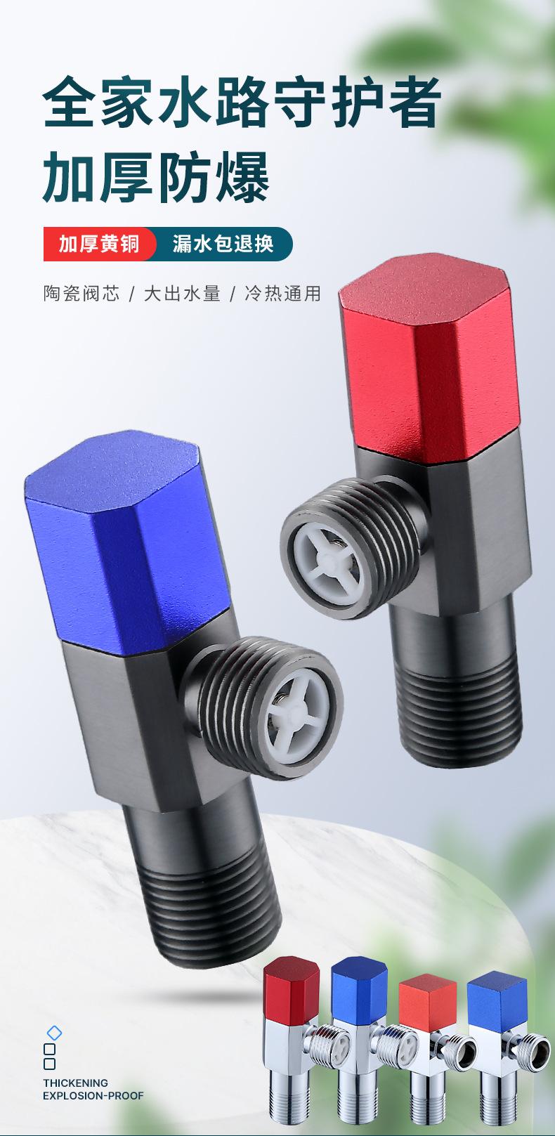 Válvula de Ángulo para Inodoro Doméstico de Cobre Rojo y Azul Válvula de Cierre con Pistola Rociadora Válvula de Triángulo Universal para Agua Fría y Caliente Cobre Puro Engrosado Válvula de 1/2 Pulgada 3/4 de Pulgada