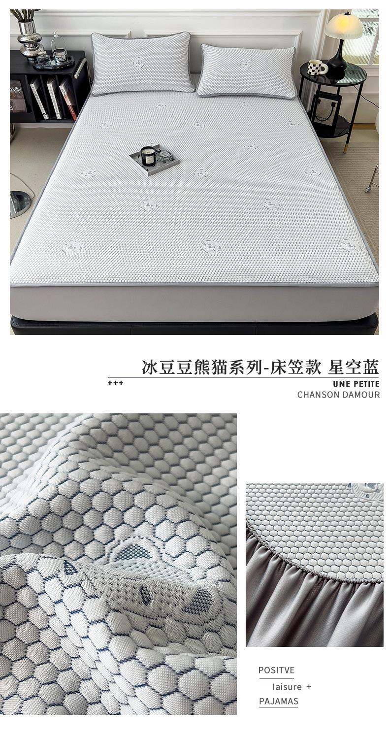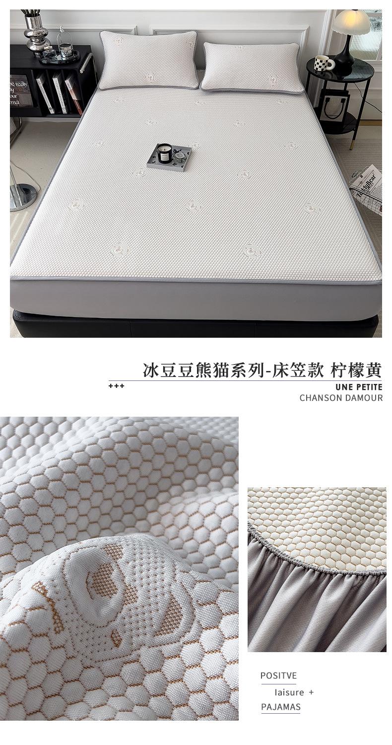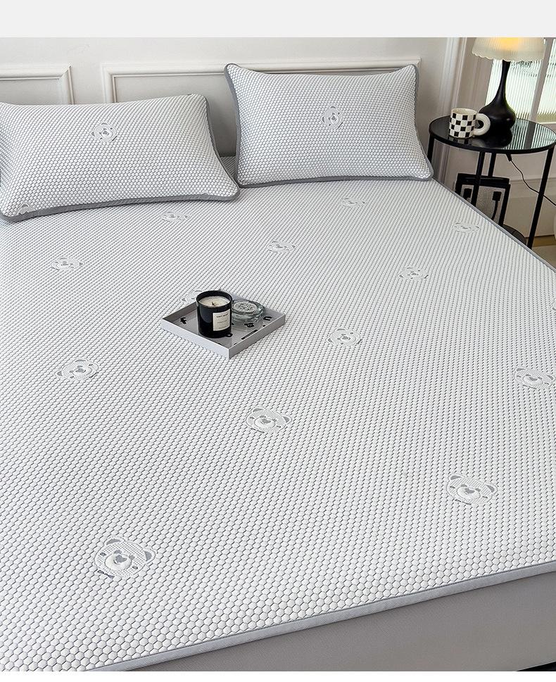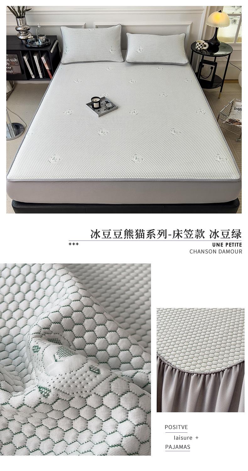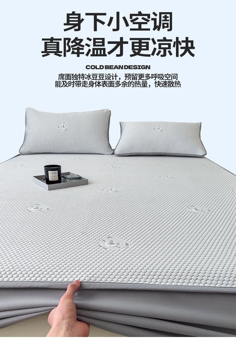 Set de Tres Piezas de Esterilla de Frijol de Hielo Antibacterial Clase de Verano Hoja Ajustable Jacquard de Frijol Liang Esterilla Acondicionada Esterilla Suave de Seda de Hielo Fresco