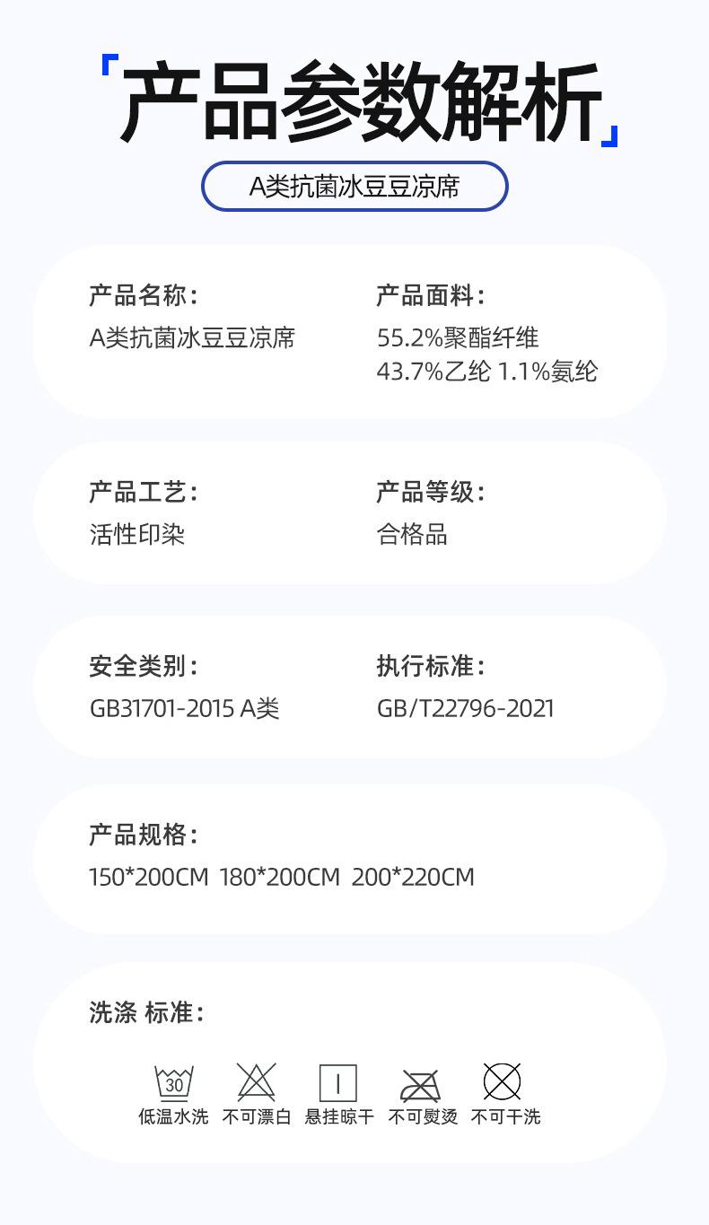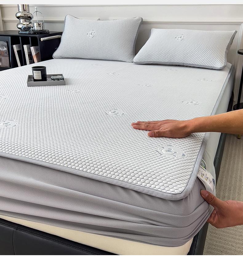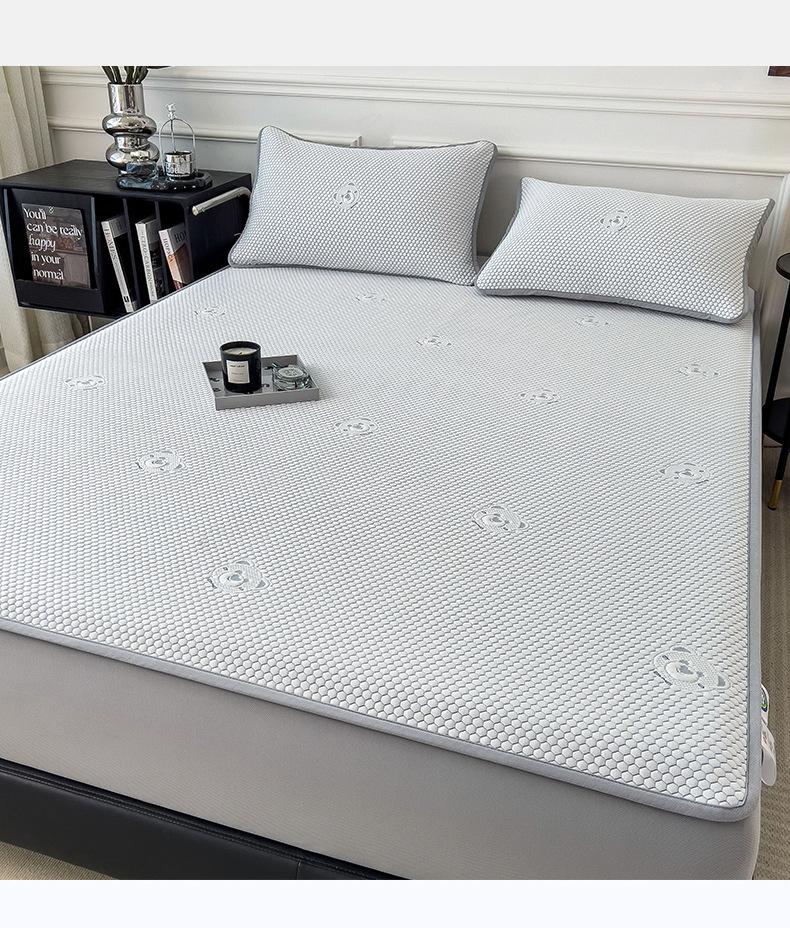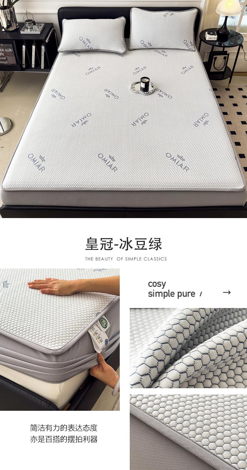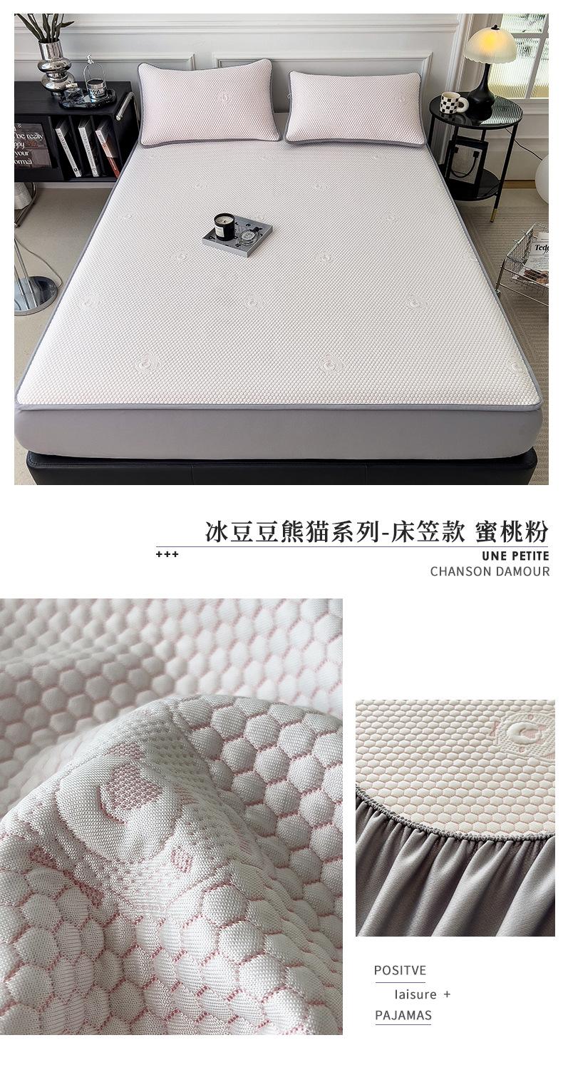 Set de Tres Piezas de Esterilla de Frijol de Hielo Antibacterial Clase de Verano Hoja Ajustable Jacquard de Frijol Liang Esterilla Acondicionada Esterilla Suave de Seda de Hielo Fresco