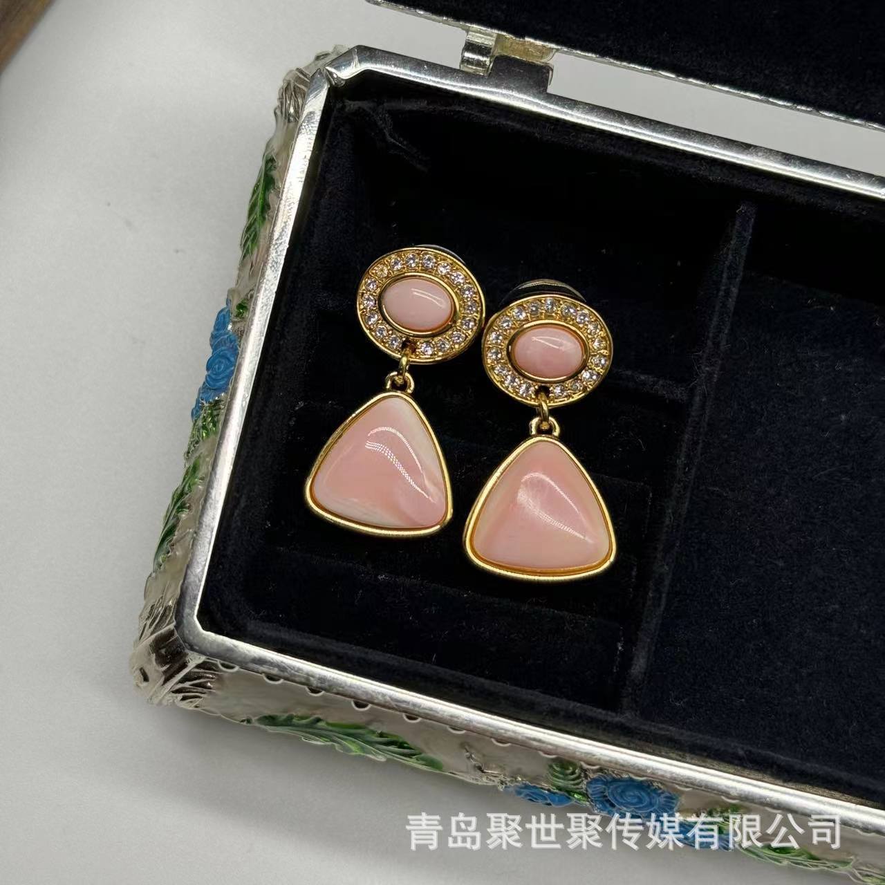 Aretes Geométricos Rosados Vintage Moda Europea y Americana Retro de Alta Gama para Mujer Otoño e Invierno Joyería al por Mayor