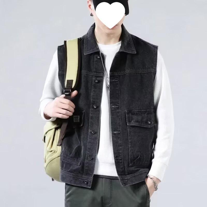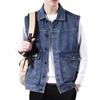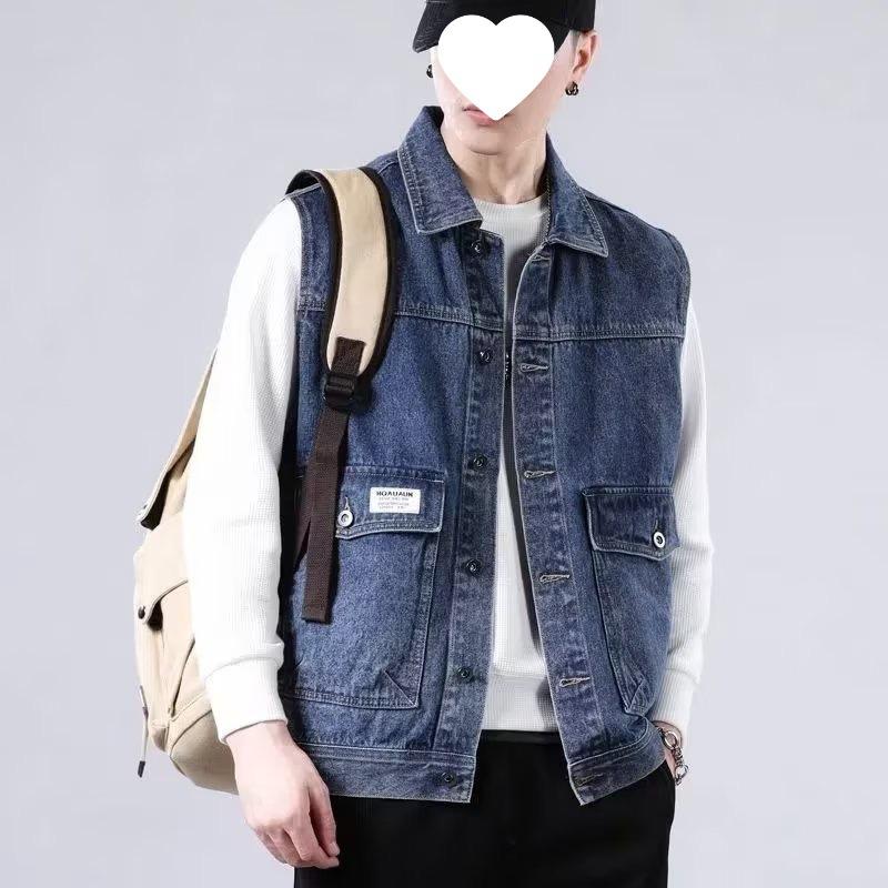 Compra Chaleco vaquero de marca de moda para hombre, chaqueta de trabajo sin mangas, holgada, con hombros descubiertos, para primavera y otoño. al por mayor en Joom.pro