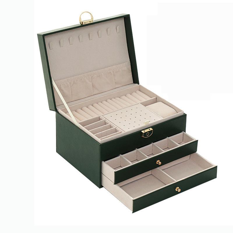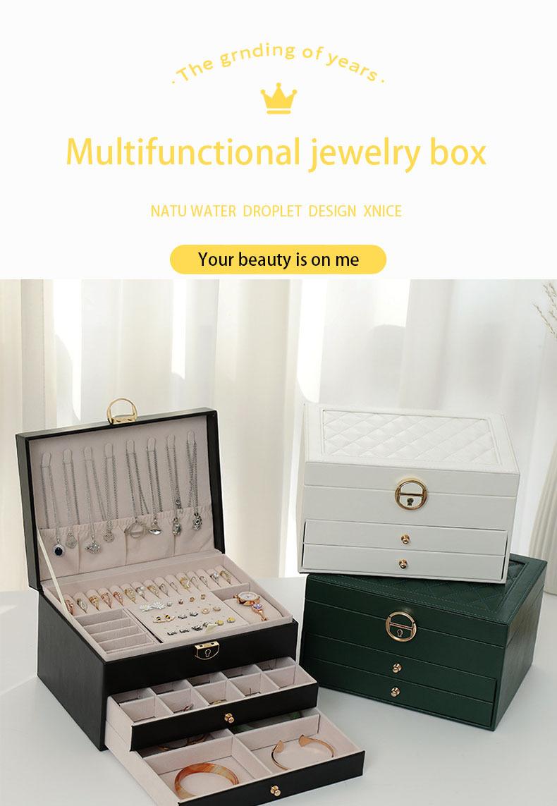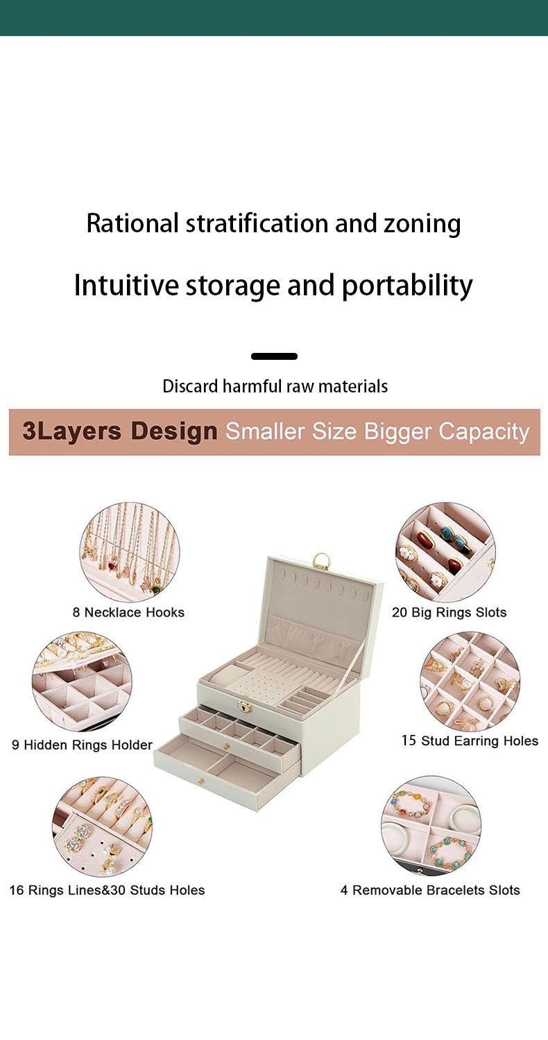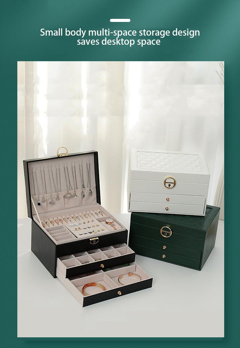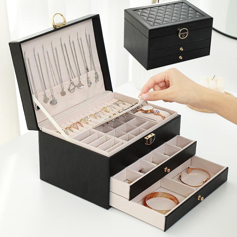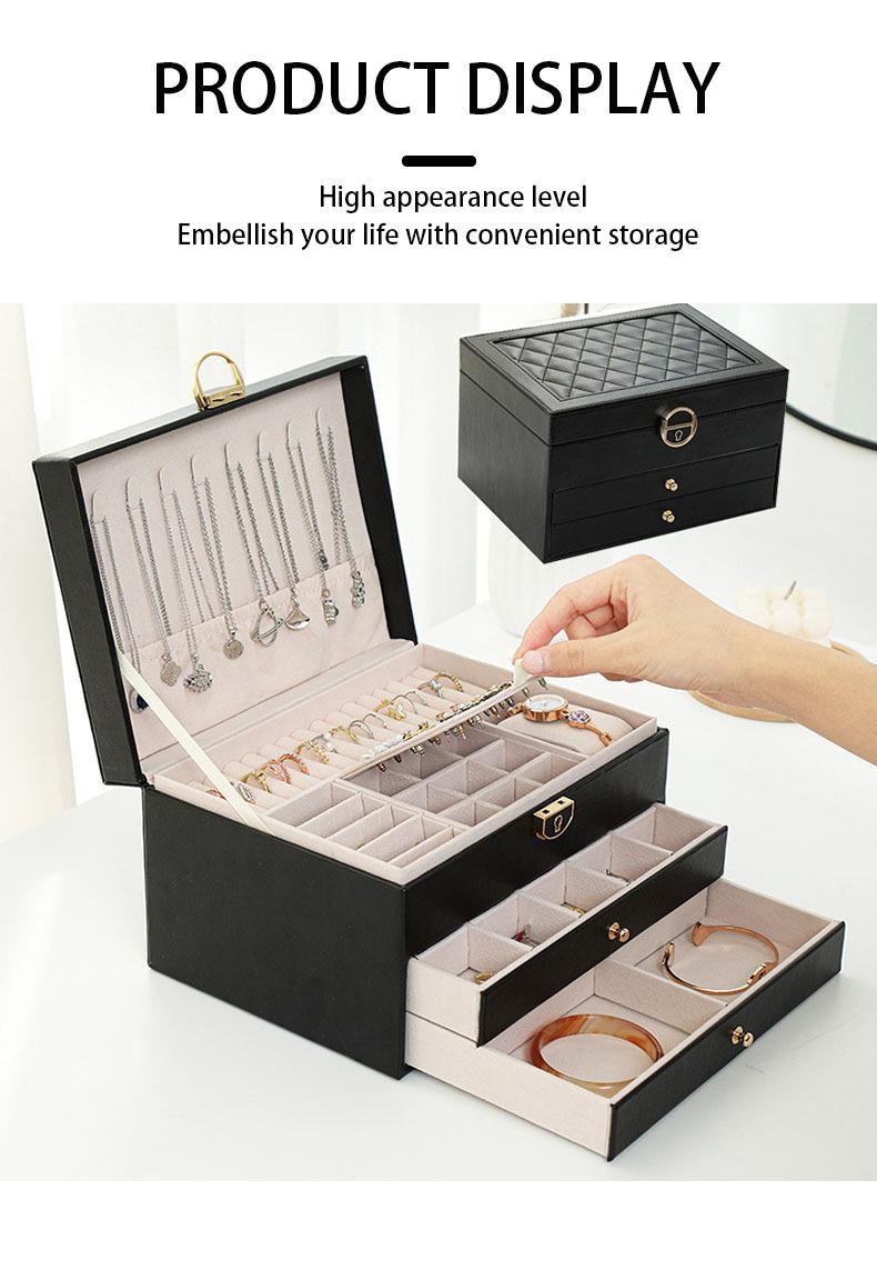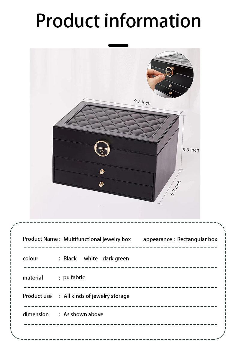 Caja de Joyería de Tres Capas con Forma de Diamante con Cerradura Caja de Almacenamiento de Joyería Multifuncional Aretes Aretes Collar Anillo Caja de Almacenamiento Cajón