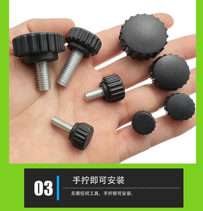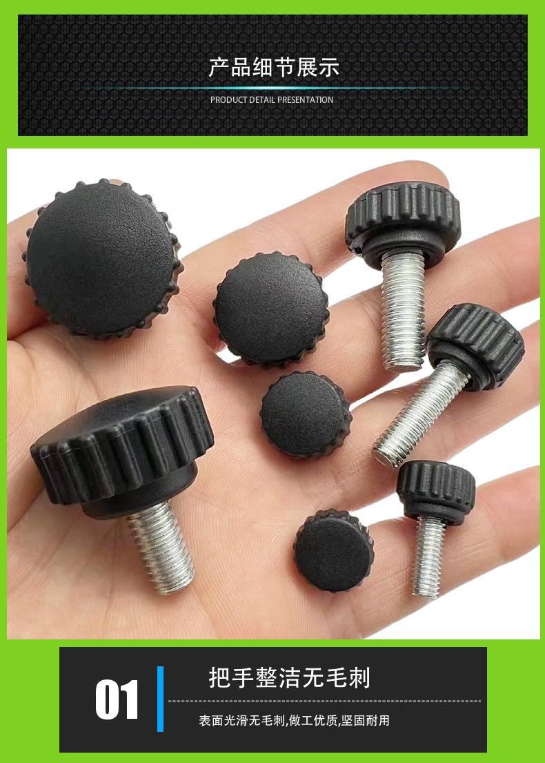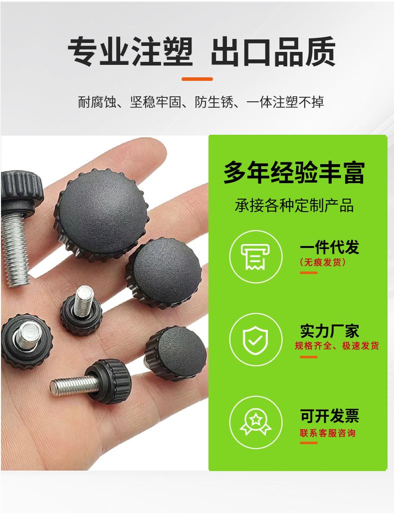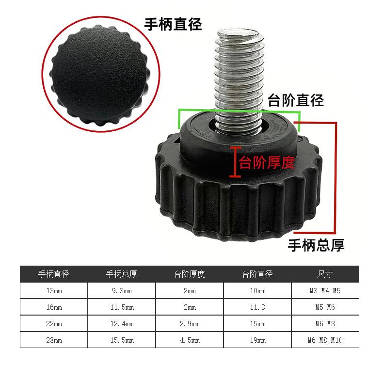 Tornillo de cabeza redonda con mango moleteado, tornillo de perilla, mango de plástico giratorio a mano, perno, m3m4m5m6m8m10