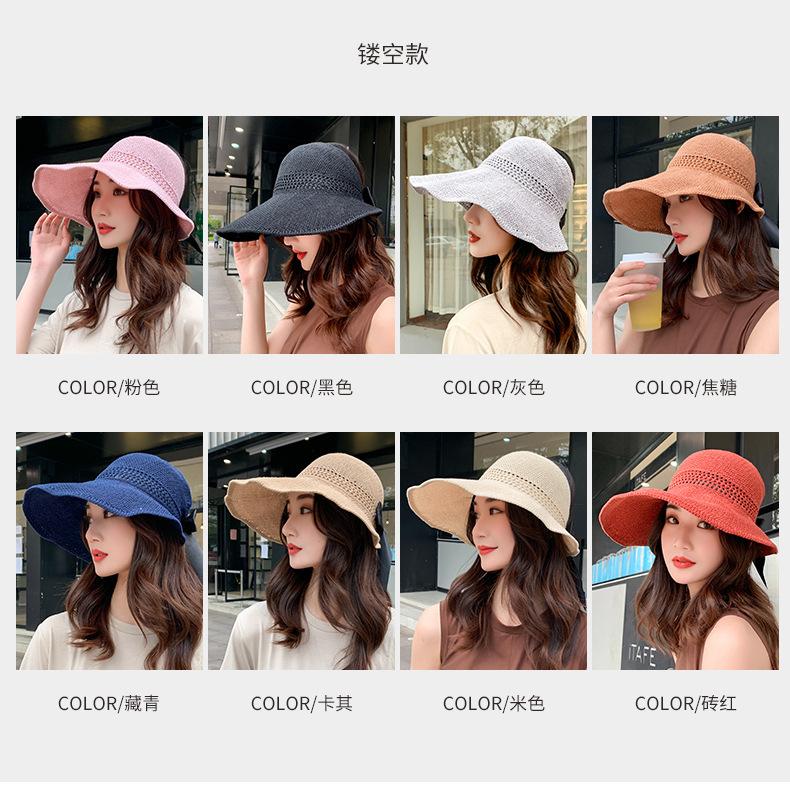 Compra Sombrero de sol de primavera y verano para mujer, sombrero de copa hueca enrollable, sombrero de playa de ala grande, sombrero protector solar, sombrero fresco de verano, sombrilla plegable, sombrero de pescador al por mayor en Joom.pro