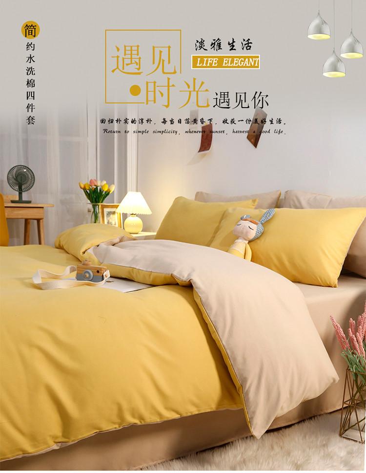 Juego de Cuatro Piezas de Algodón Lavado Producto Nuevo 2024 Color Puro Lavado Cepillado Juego de Cuatro Piezas Dormitorio Individual y Doble Juego de Cama Sábanas