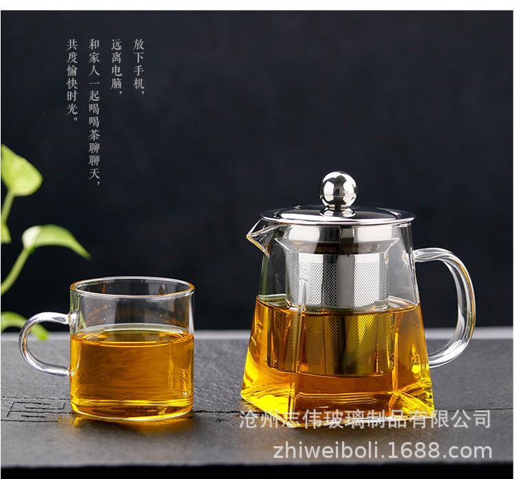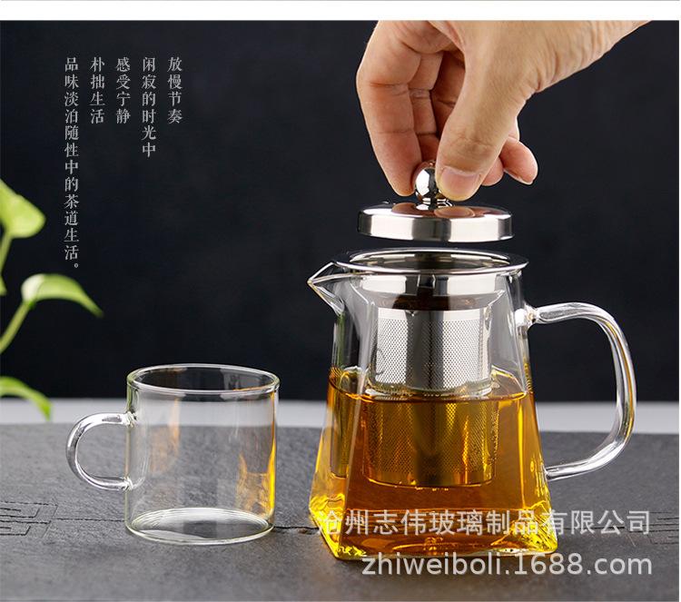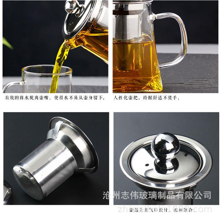 Tetera de vidrio de borosilicato de alta calidad con filtro de acero inoxidable y tapa, tetera de vidrio de fondo cuadrado, múltiples especificaciones