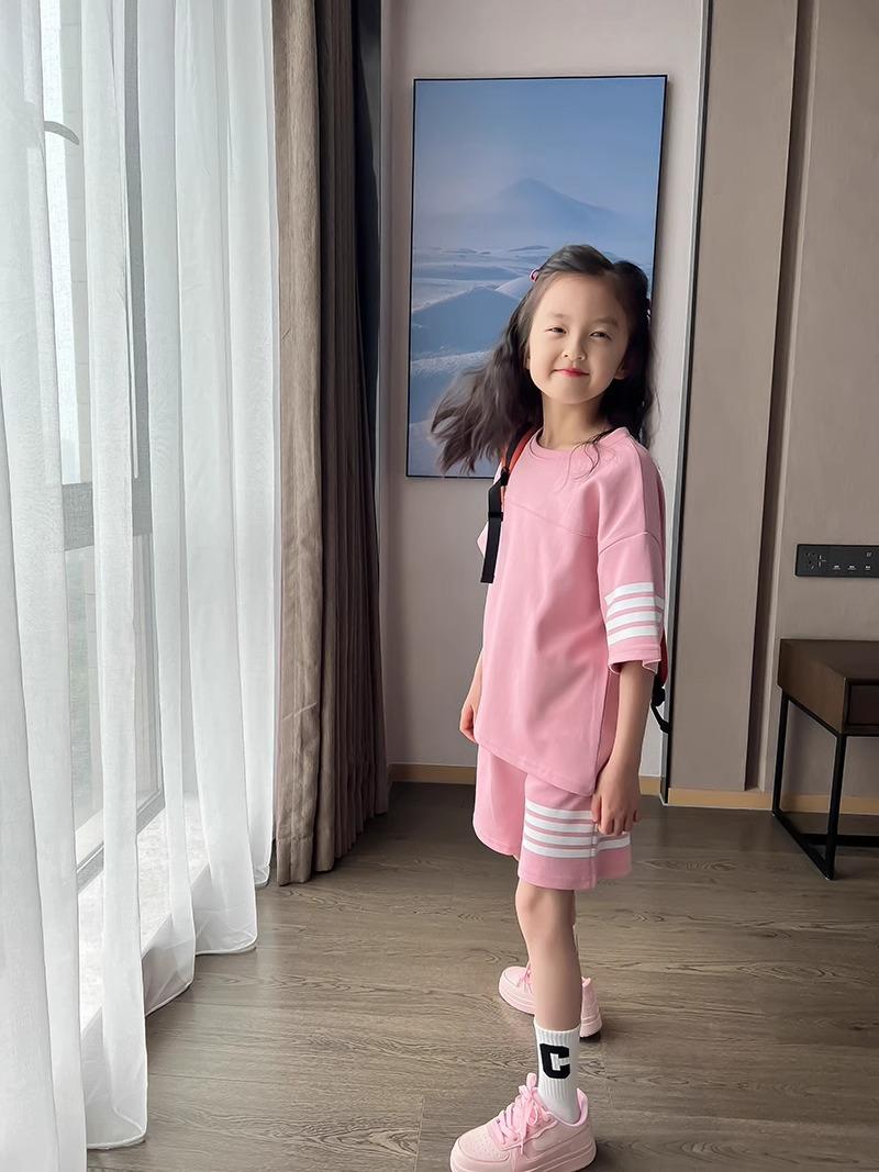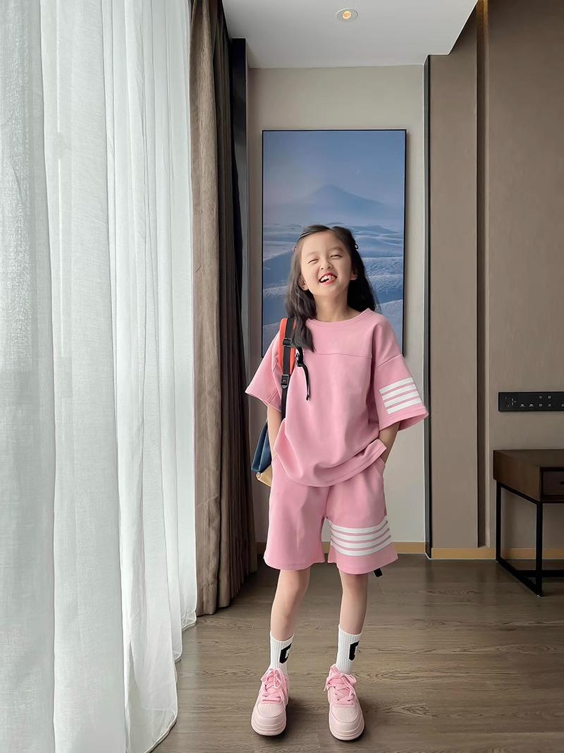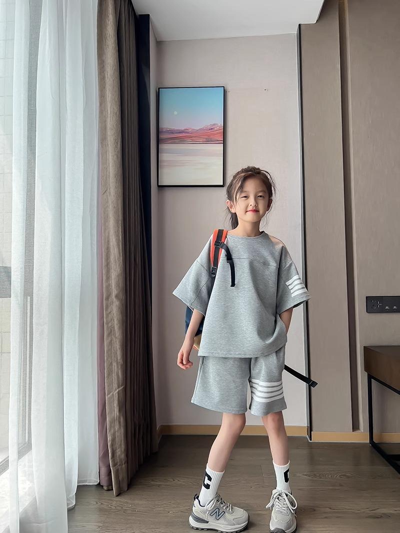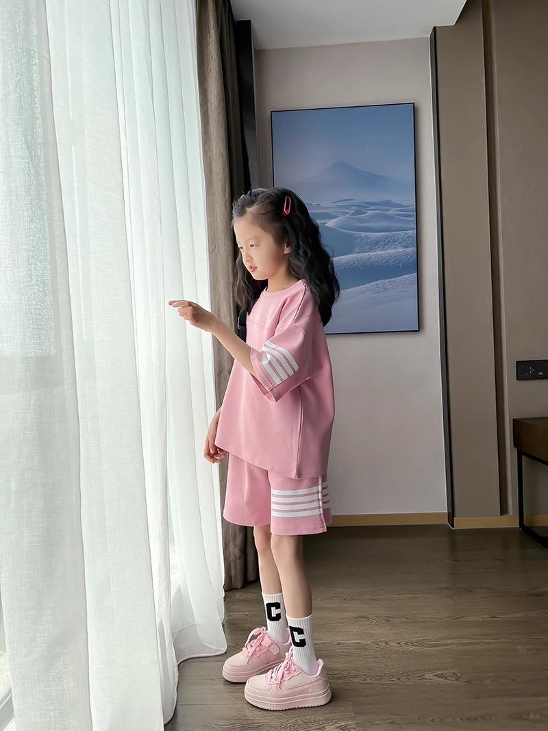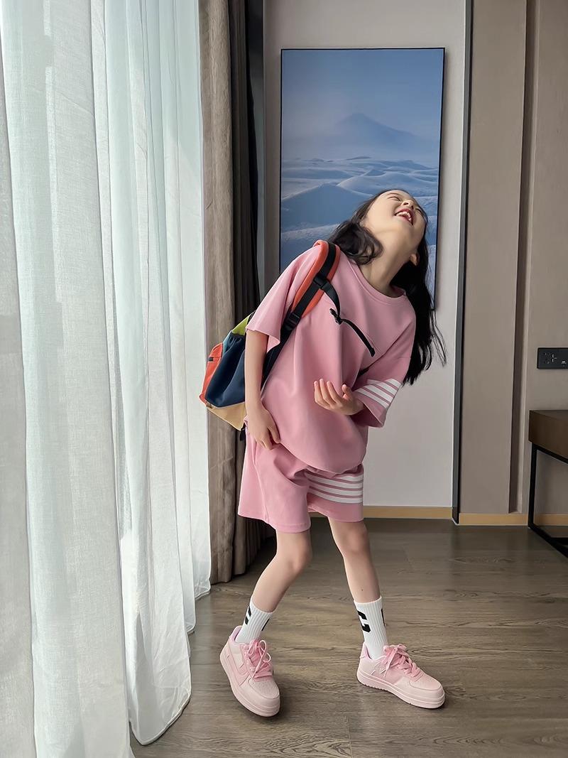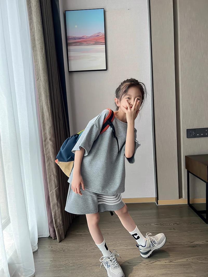 Conjunto de Verano para Niñas, Conjunto de Dos Piezas de Shorts Deportivos de Verano para Niños Grandes de Manga Corta Holgado Versátil, Conjunto de Moda para Niños