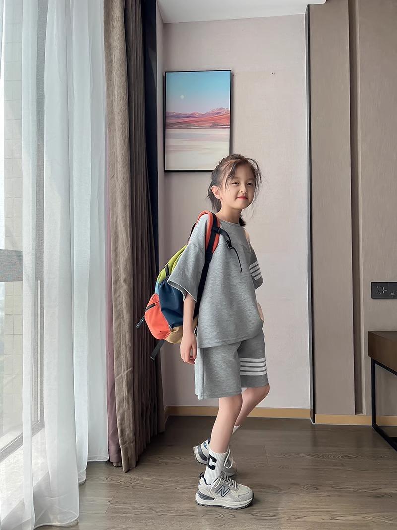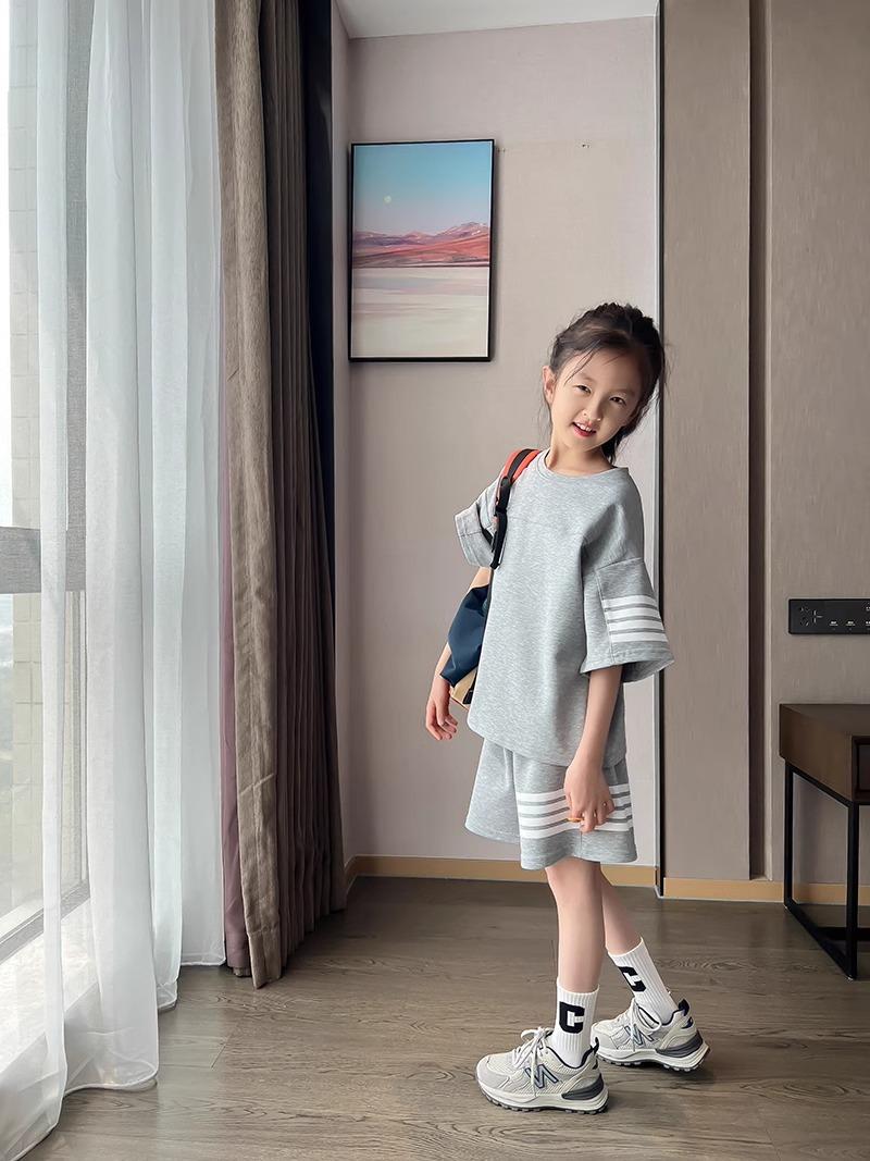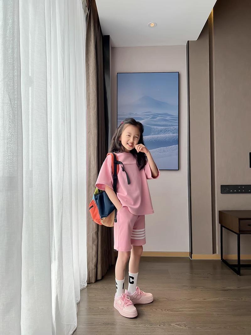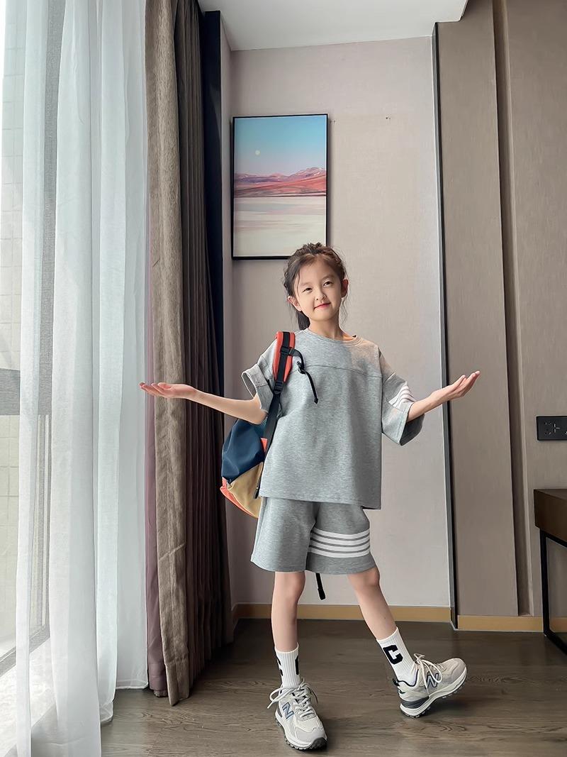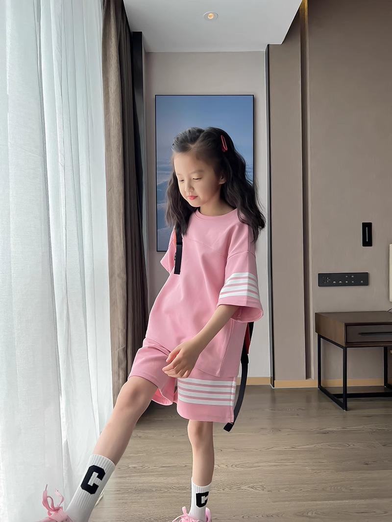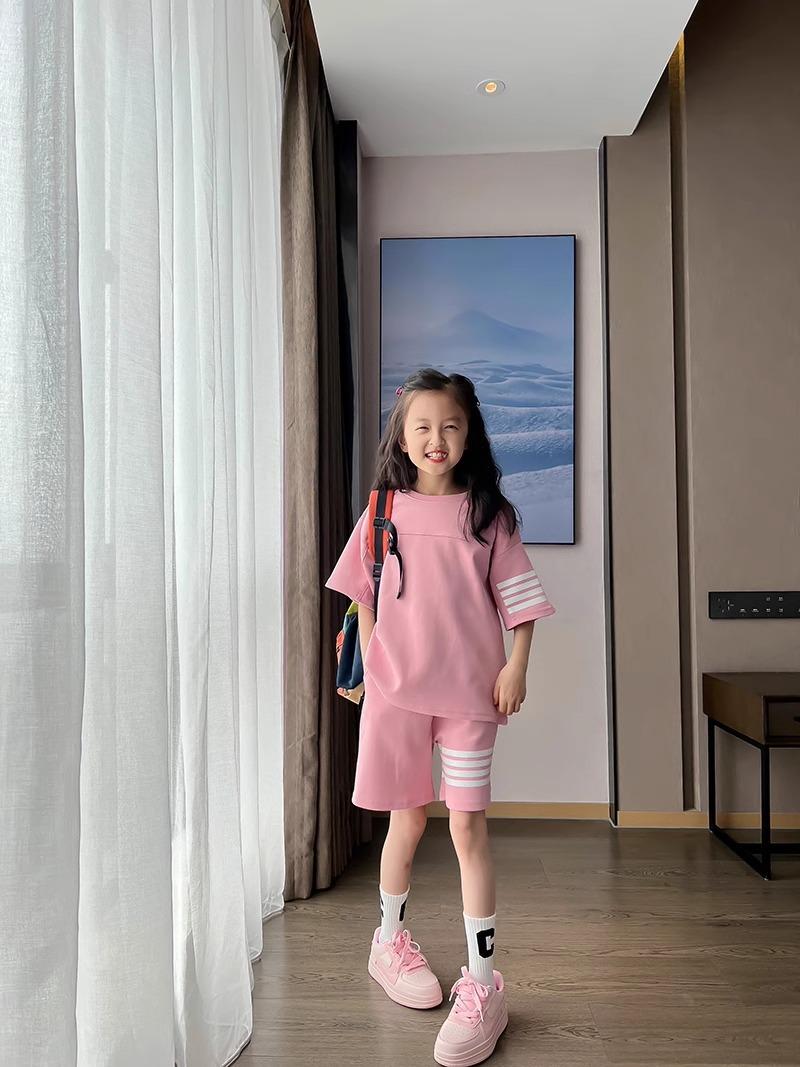 Conjunto de Verano para Niñas, Conjunto de Dos Piezas de Shorts Deportivos de Verano para Niños Grandes de Manga Corta Holgado Versátil, Conjunto de Moda para Niños