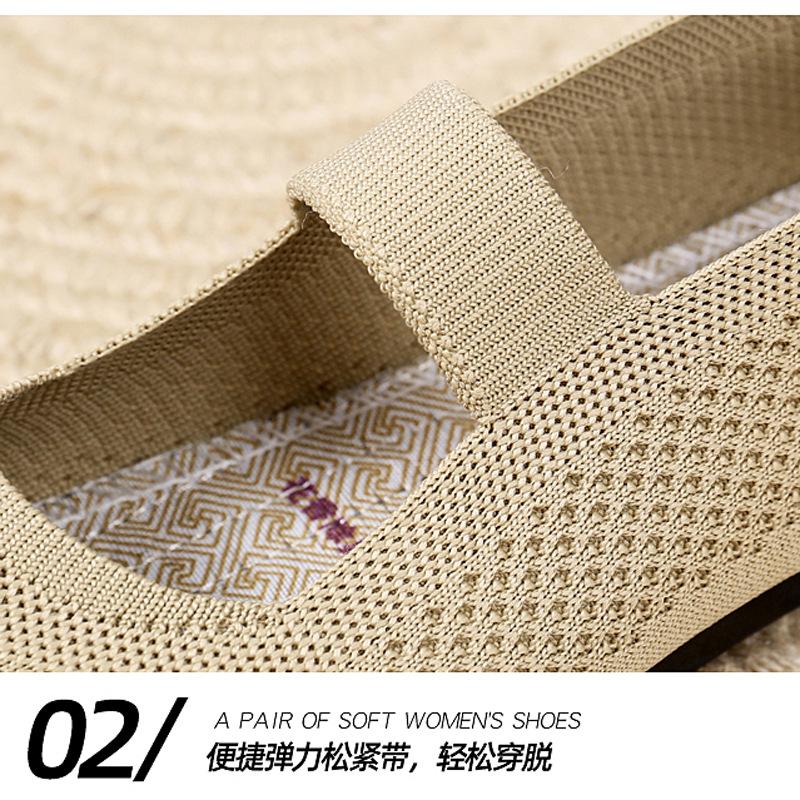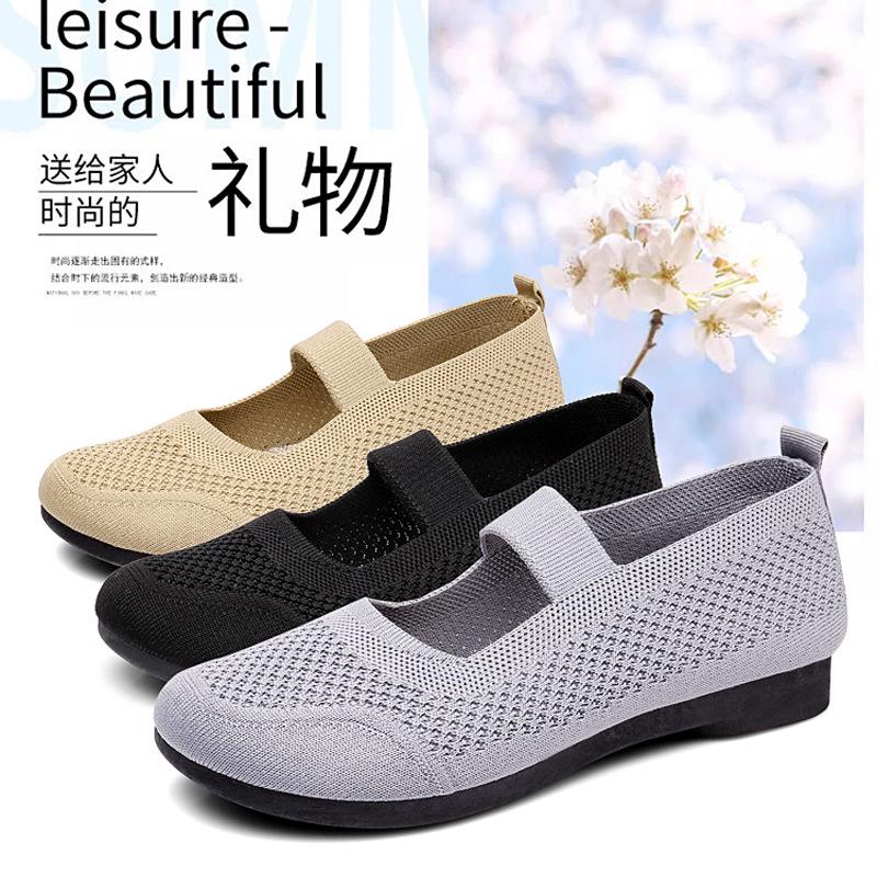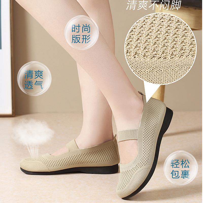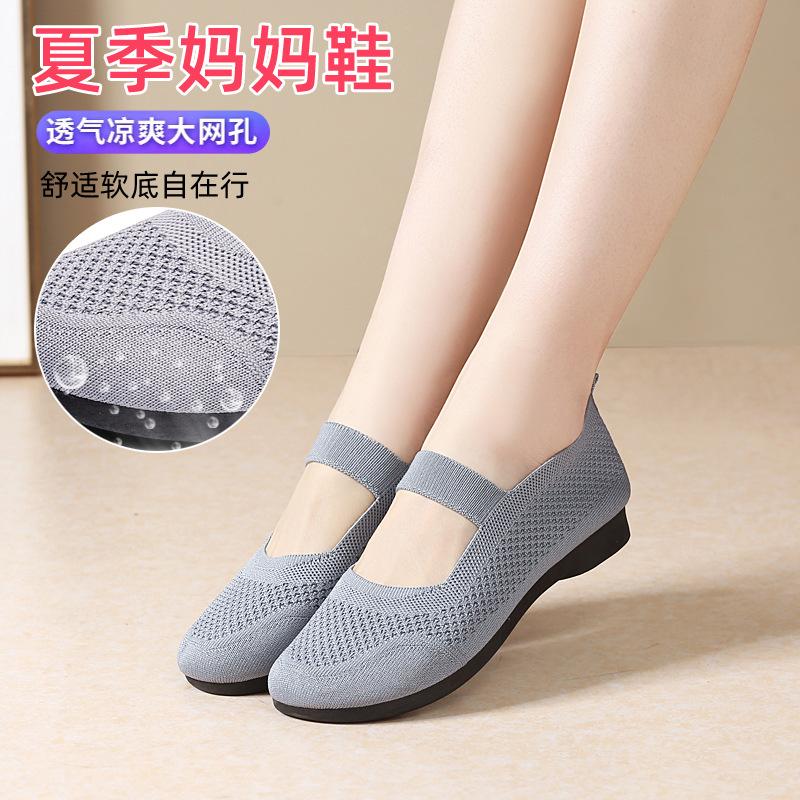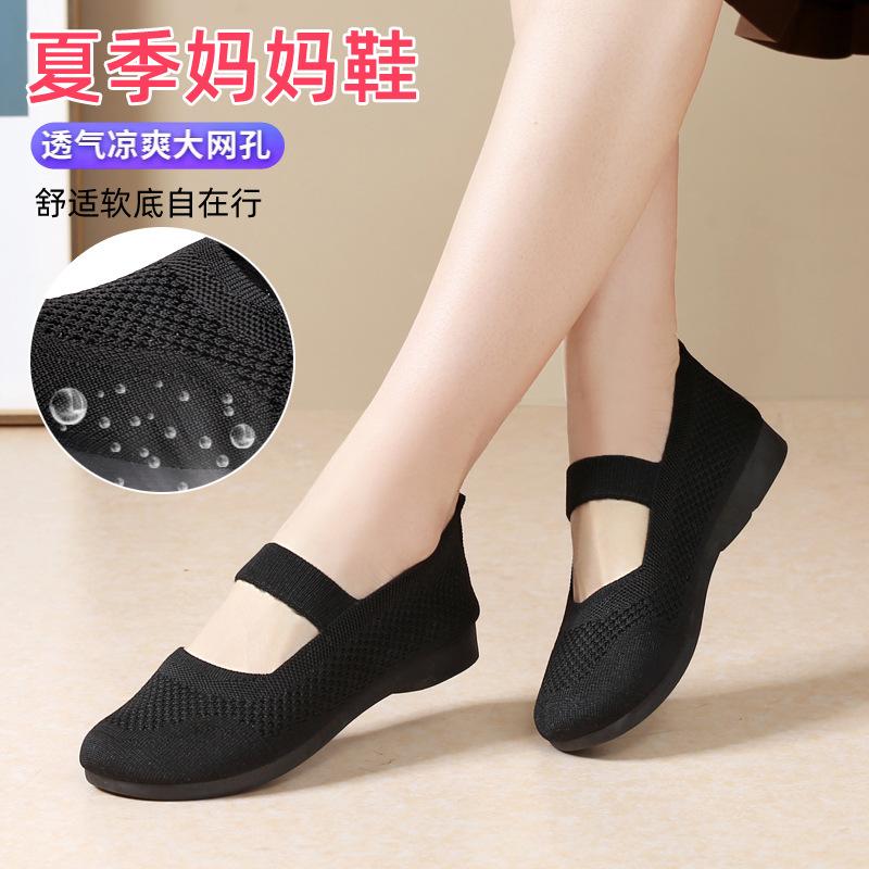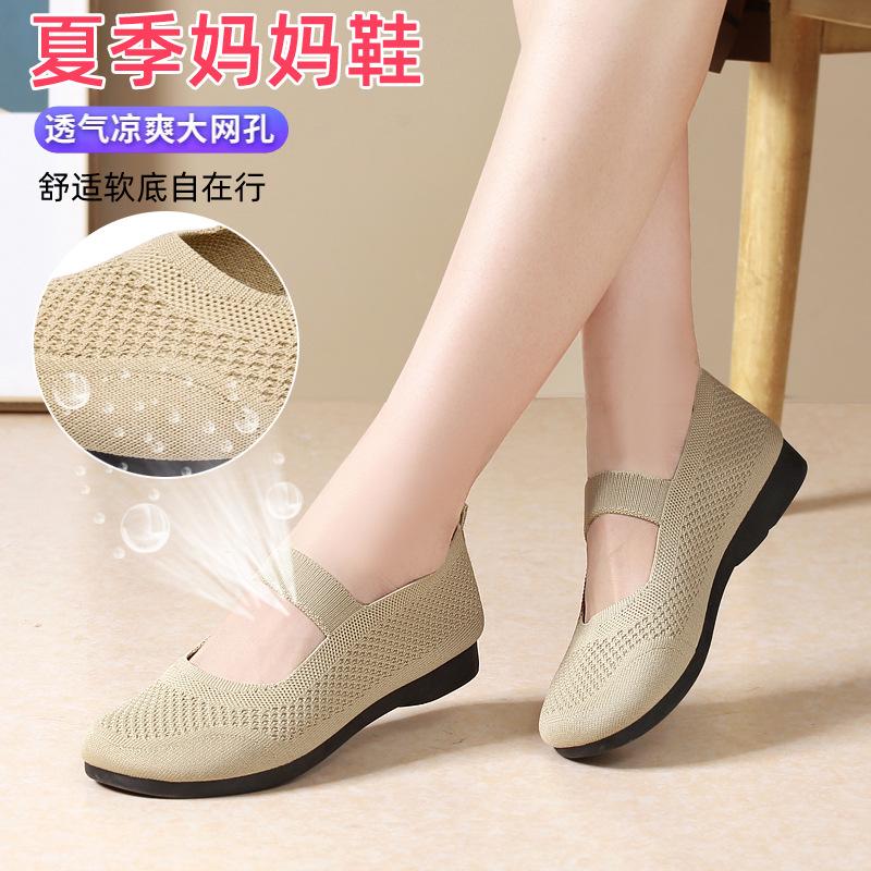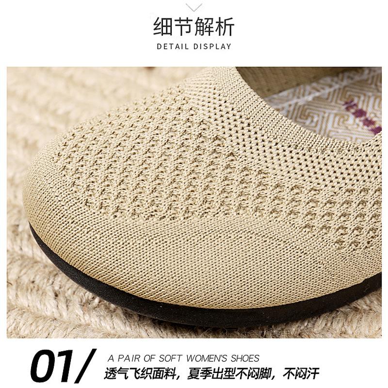 Primavera y verano, nuevos zapatos de tela antiguos de Beijing, zapatos de mujer de una sola capa, zapatos de guisantes de boca baja, zapatos de madre de fondo suave de malla transpirable tejida voladora, zapatos de trabajo